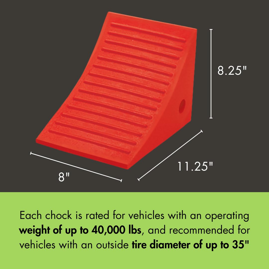 Trusted by fleets around the globe, Checkers truck wheel chocks are designed to provide a dependable solution for over-the-road trucks, trailers, pickups, and utility vehicles. Whether you’re securing a heavy-duty semi or a smaller utility vehicle, each wheel stop delivers peace of mind in every situation.Made from lightweight urethane, these wheel chocks are built to last longer than traditional rubber alternatives. Their long-lasting design saves money in the long run, while their lightweight nature reduces strain on workers during transport and deployment, saving valuable time on the job. They are easy to handle while maintaining the durability needed for heavy-duty applications. Resistant to oils, fuels, solvents, and harsh weather conditions, each wheel stopper maintains its integrity in some of the toughest environments. Unlike rubber chocks that may crack or degrade, Checkers chocks offer a perfect combination of strength and convenience. Whether you’re working on a busy construction site or securing a vehicle at a loading dock, these chocks are designed to simplify your job.The bright orange color makes these chocks easy to spot from a distance, helping reduce tripping hazards and ensuring that they aren’t overlooked during vehicle inspections or deployments. This high-visibility design is particularly useful in low-light conditions or chaotic work environments, where clear identification of safety equipment is critical.Why Choose Checkers Wheel Chocks?- Lightweight urethane construction for easy handling- Resistant to oils, fuels, solvents, and harsh weather- High-visibility orange color for improved safety- Proudly made in the USA, and trusted globally by fleetsInvest in wheel chocks for trucks that are designed to last. As a trusted name in motion safety automotive parts & accessories, Checkers delivers trailer tire chocks that meet the highest standards of safety and durability.
