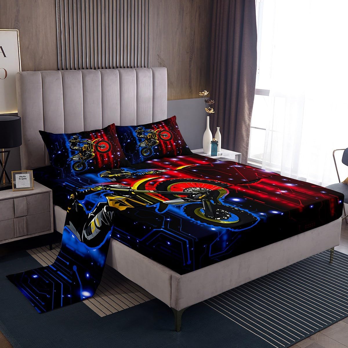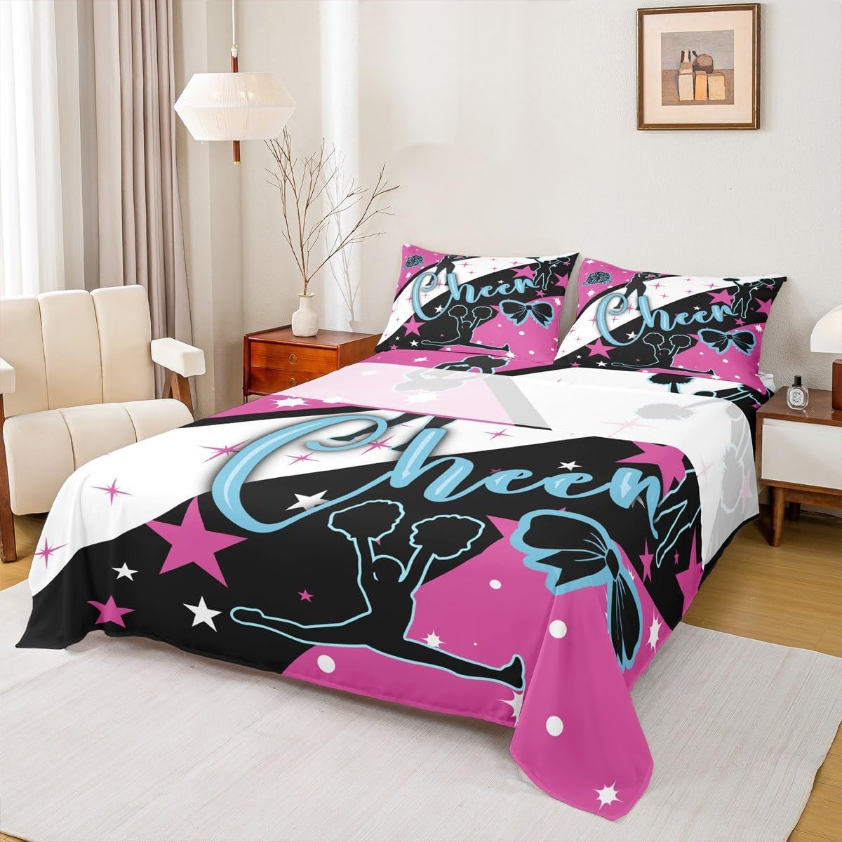 Our bed sheet is made of polyester fabric, breathable and soft, keep warm in winter and cool in summer; bed set with stylish design is very suitable as room decoration for boys and girls; create a comfortable sleeping environment to make you fall asleep all night Range of size Twin Sheet Set: 1 twin fitted Sheet 39 inch x75 inch x16 inch, 1 twin flat sheet 66 inch x96 inch and 1 pillowcase 20 inch x30 inch Full sheet set: 1 full fitted sheet 54 inch x 75 inch x 16 inch, 1 full flat sheet 81 inch x 96 inch and 2 pillowcase 20 inch x 30 inch Queen sheet set: 1 queen fitted sheet 60 inch x 80 inch x 16 inch, 1 queen flat sheet 90 inch x 102 inch and 2 pillowcase 20 inch x 30 inch deep pocket fitted sheet with elastic all around materials: microfiber fabric, lightweight and soft design: With vibrant and novelty designs and 3d print technique, this sheet is very suitable as room decoration for boys and girls bedroom care instructions dry clean preferred; machine washable, use cold water on gentle cycle, tumble dry low