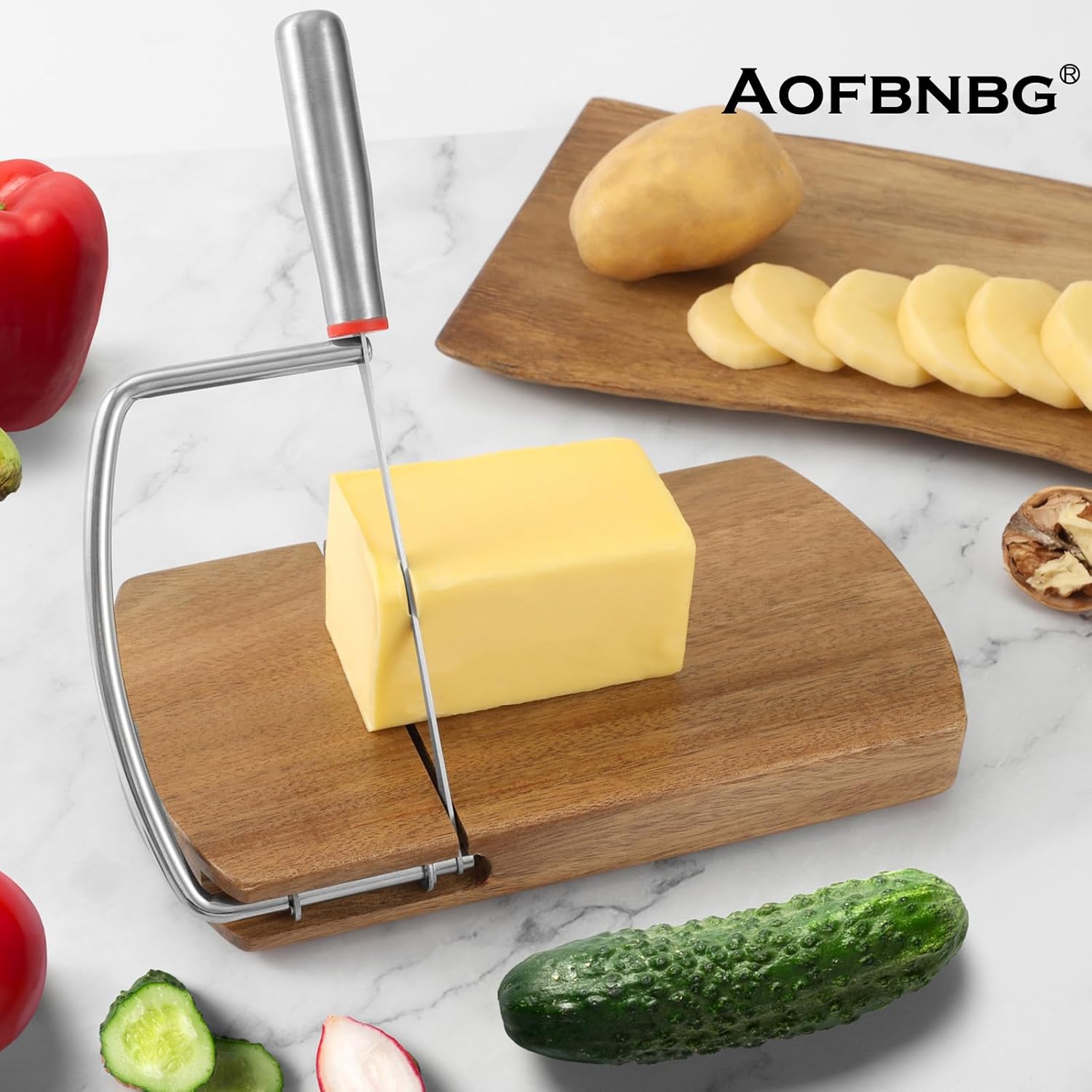Effortlessly slice through your favorite cheeses with this versatile cheese slicer and slicer set. Crafted with durable materials, this handy tool allows you to create perfectly thin or thick slices of cheese for charcuterie boards, sandwiches, or tasty snacks. The wire slicer glides smoothly through soft and semi-hard cheeses, while the sturdy blade tackles firmer varieties with ease. Designed with ergonomic handles for a comfortable grip, this slicer set is a must-have for any cheese lover's kitchen. Elevate your cheese presentations and enjoy delicious slices every time with this reliable and practical cheese slicer and slicer.