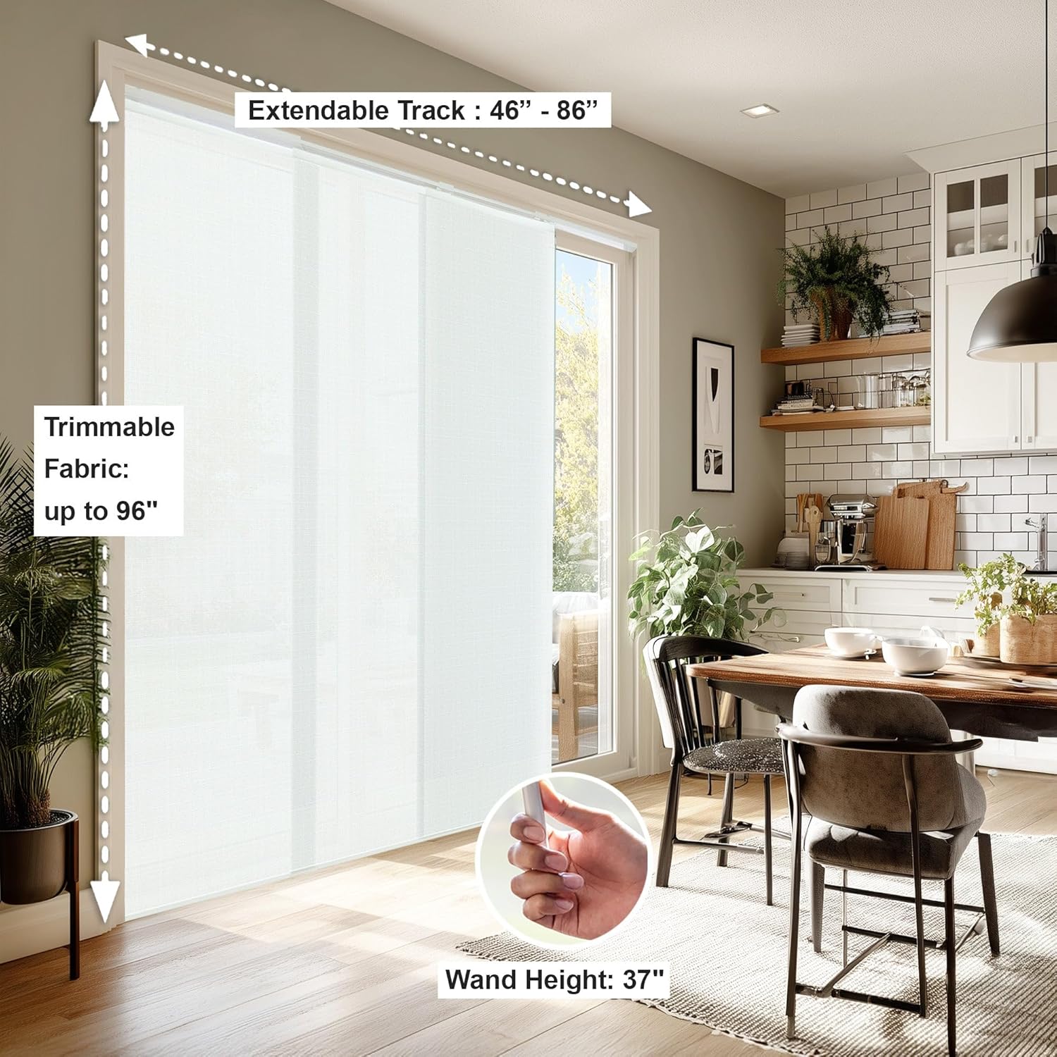 | Included Components | All necessary hardware and instructions, Four fabric panels, Sliding Door Blind, Two Wands and Bottom Rails |