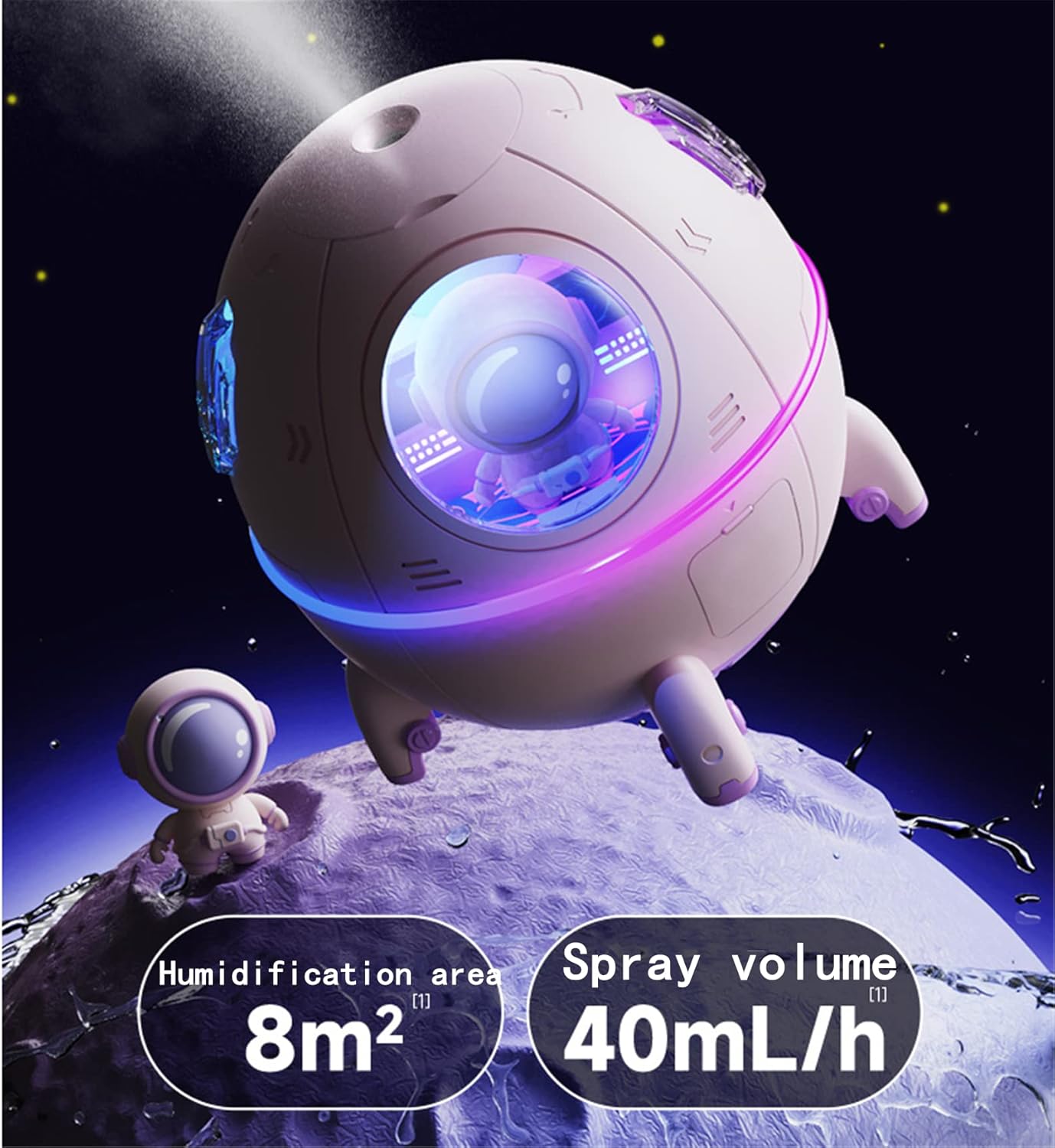 kids humidifiers for bedroom This humidifier for baby is made of BPA-free material, keeping infants and children healthy. The cool mist humidifer helps relieve dry skin, coughing and more. Device will automatically shut down when out of water, and is safe to use in baby rooms, bedrooms and nurseries. humidifier for bedroom by the top design team designed specifically for children, every child has a dream of landing on the moon, the product's unique capsule shape, realistic astronauts inside the cabin will bring fun to children, so that babies are happy every day Multifunctional: products with 7-color flashing ambient light so that children are not alone at night Astronauts can be removed and installed at any time You can use it as a trendy toy SKIN-CARE MIST–Continuous/intermittent spray, high-density filter kapok, ensure healthy humidification, Nano skincare cool mist humidifier, hydrate the skin WATER ADDING & CLEANING - 220ml large-capacity water tank, plant humidifier once add the water used for 8 hours, split the tank, clean desktop humidifier more conveniently matches Type-c interface,cute humidifier is so light unique landscape for bedroom, office, travel, wonderful gift to celebrate birthdays, anniversaries, festivals
