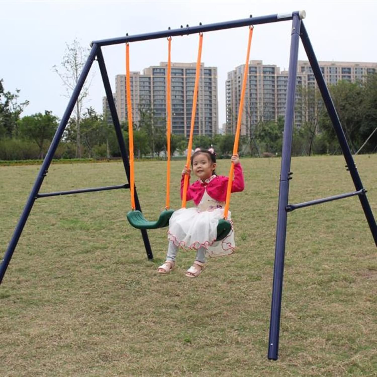 The swing frame is made of heavy-duty steel, and the A-frame creates a sturdy and safe structure. The U-curve design fits the child's body, making it more comfortable and user-friendly. The instructions are simple and easy to understand. The package comes with the necessary tools, and the components are pre-drilled for assembly. Dimensions: 102 inches (W) x 74 inches (D) x 71 inches (H) Net weight/gross weight: 20/21 kg