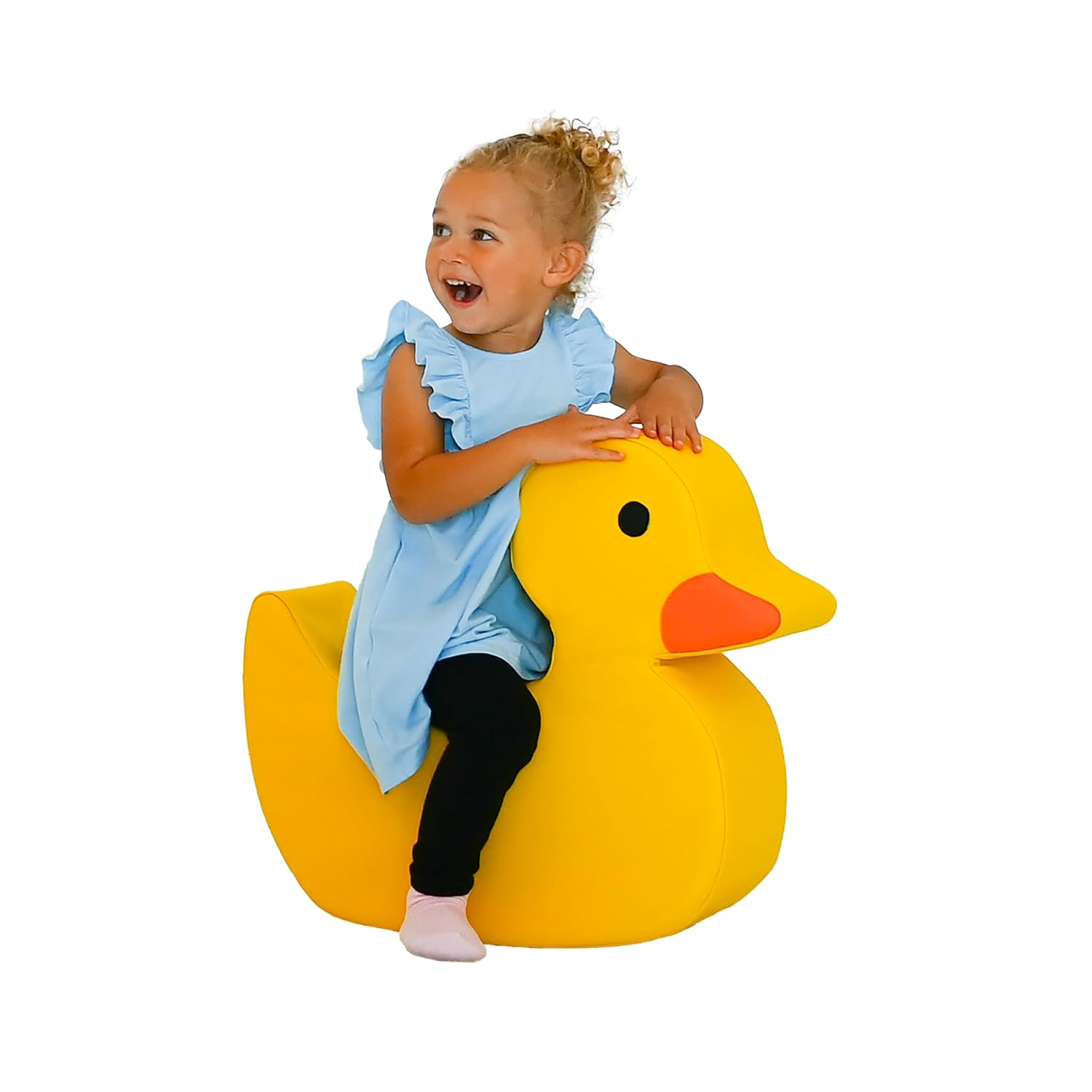 Foam toddler chair combines durability, safety, and creativity to support active early learners. Its dense foam core and water-resistant vegan leather cover not only make it long-lasting but also simplify cleanup, giving teachers and parents more time to focus on children instead of maintenance. Designed with safety in mind, the chair meets ASTM and CPSIA standards and is Prop 65 compliant, ensuring peace of mind in busy classrooms and daycare centers. The playful dinosaur design features a detachable head and body, secured with hook-and-loop fasteners, to encourage imaginative play, problem-solving, and social interaction as children explore new ways to sit, ride, or rearrange the pieces. Lightweight construction and a built-in handle allow even toddlers to move the chair independently, promoting self-confidence and flexibility in classroom organization. Sized just right for ages 1–3, it is a reliable piece of preschool furniture that adapts to both learning and play. Proudly made in America and backed by a 2-year warranty, this toddler chair is a versatile piece of soft play furniture designed to grow with children’s curiosity.