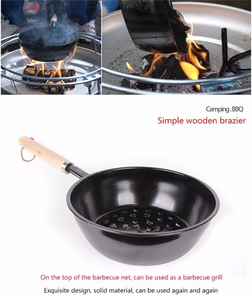 The long wood handle design makes it convenient to move the barbecue chimney starter, scald problem.Put the charcoal into the BBQ charcoal pot and put the whole pot on fire, letting the charcoal be ignited. The bottom hollow structure makes it convenient to get inside charcoal touched with the fire. Easy to operate.Made of iron material, hard, wear resistant and , owning long using life span.With charcoal inside, the BBQ charcoal pot also can be used as BBQ grill directly when there is a layer of BBQ mesh on the charcoal, practical and convenient.Widely suitable for picnic, family dinner, BBQ and other activities, the BBQ charcoal pot is easy to operate.Specifications:Type: BBQ charcoal potQuantity: 1pcMaterial: iron + woodColor: blackSize: 16*5.5cm/ 6.29*2.16inch(L*W)Handle length: 13cm/ 5.11inchPackage Contents1* BBQ Charcoal potNote:The real color of the item may be slightly different from the pictures shown on website caused by many factors such as brightness of your monitor and light brightness.Please allow slight manual measurement deviation for the data.Our frying pan ergonomic, This handle curved delivers a comfortable, strain-free grip and secure, non-slip control, even with wet hands. It's delivers unwavering safety and comfort for every meal