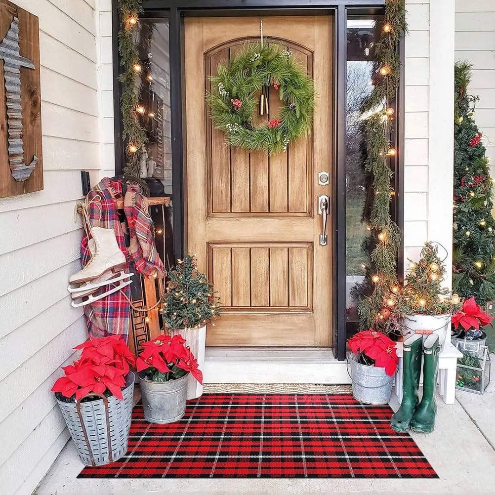 Our buffalo check doormat is the perfect way to convey your style to your guests! It Makes the perfect combination with welcome doormats! Receive your guests with elegance! Perfect for Christmas, Halloween, and Thanksgiving front porch decor!