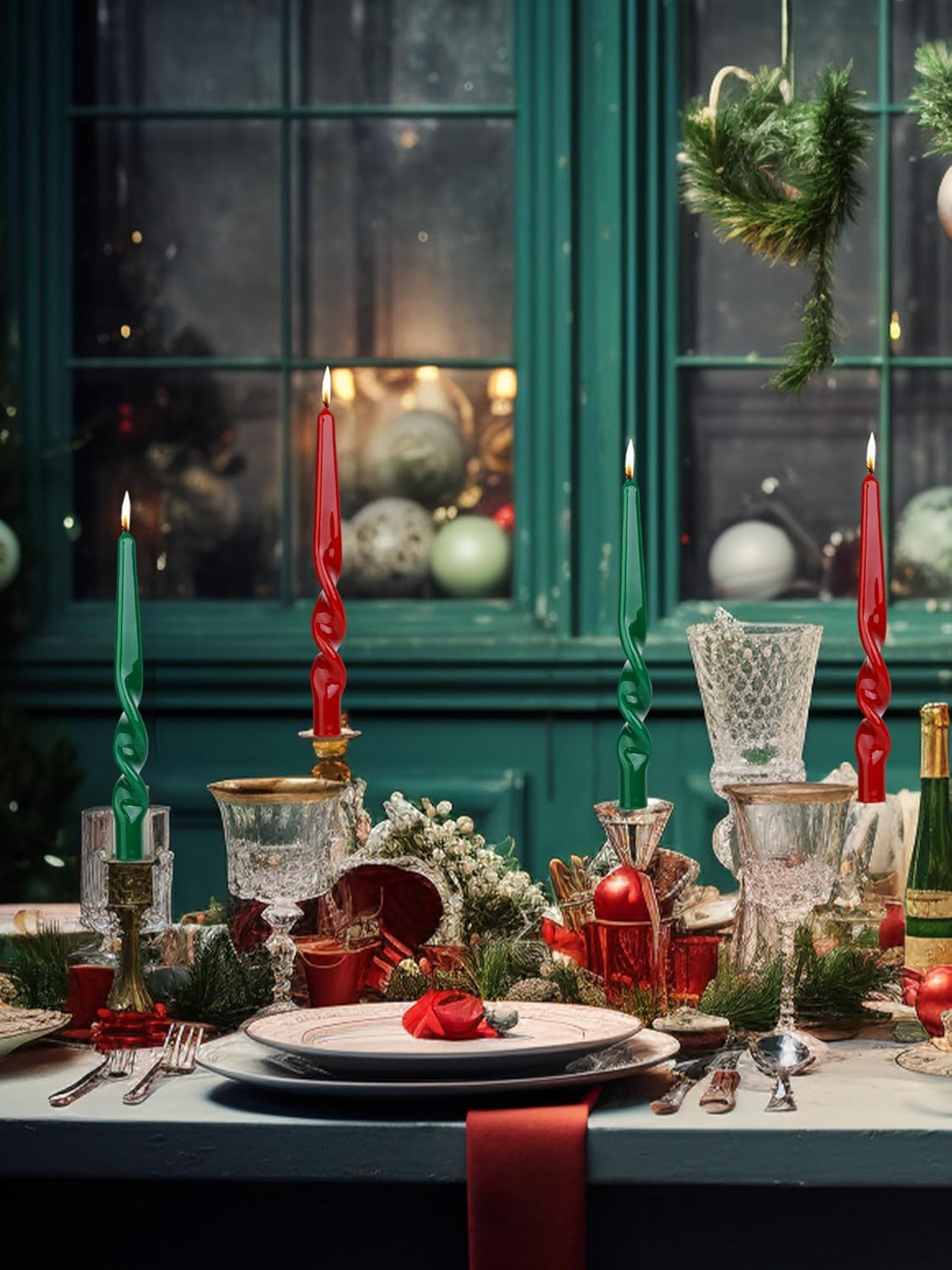Christmas Taper Candles-Green and Red Spiral Candles-Unscented Candle Sticks and Dripless,Christmas decorations