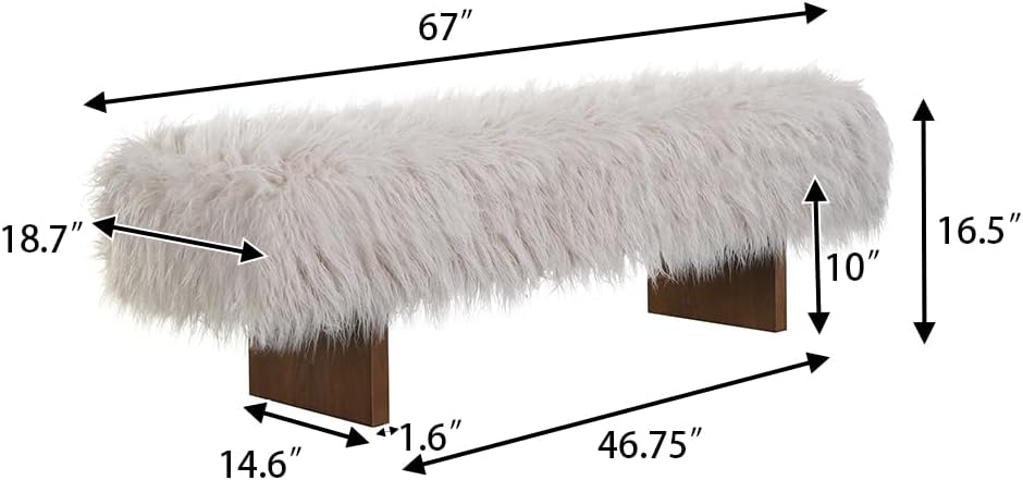 | Item Type Name | 67" Long-haired Faux Wool Bedroom Bench, Rubberwood Ottoman Bench, Spacious Seating, Long Footstool for Living Room, Spacious Seating, Luxury Entryway Bench |