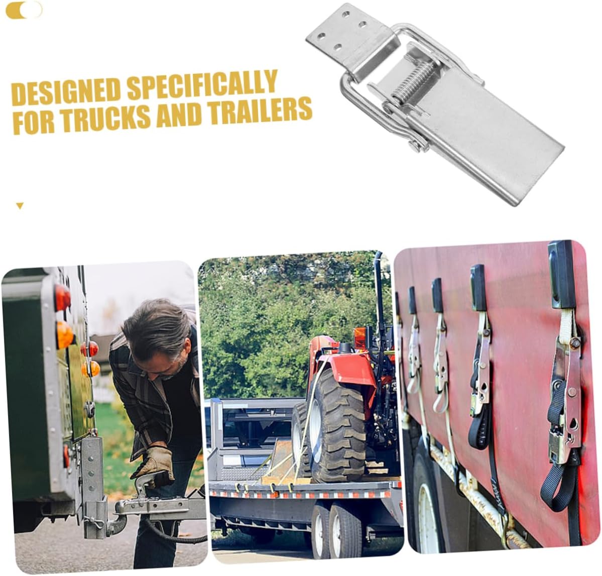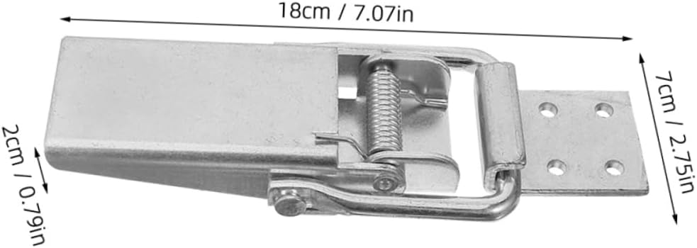 Package List 2 x locking buckles Characteristics -Essential for cargo security: this heavyduty trailer lock is essential for ensuring the security of cargo compartments in trailers and trucks spring latch hardware -Material:Galvanization clasp buckle latch -Strong locking mechanism: made from highstrength materials, the latch provides a strong locking mechanism to keep cargo securely in place trailer door latch -Color:Silver trailer door hasp lock -Easy to install: the latch is designed for easy installation, allowing you to secure it to the cargo compartment with minimal effort trailer door latch hasp -Versatile hardware accessory: this latch is a versatile hardware accessory, suitable for various trailer and truck applications heavy duty stainless steel spring loaded latch -Size:18.00X7.00X2.00cm/7.07X2.75X0.79in trailer hasp lock -Fine detail: built to withstand tough conditions, this latch offers durability and reliability for longterm use spring release latchGoods Informationheavy duty stainless steel spring loaded latch The spring-loaded mechanism provides a secure locking , ensuring that your cargo remains safe during transportation.trailer hasp lock Ideal for use on RVs, trailers, and trucks, this latch lock is a versatile and essential hardware accessory.buckle latch Made from galvanization, this latch is designed to withstand the of heavy-duty use, making it great for replacing worn-out or damaged latches on trailer gates, truck gates, and RV doors