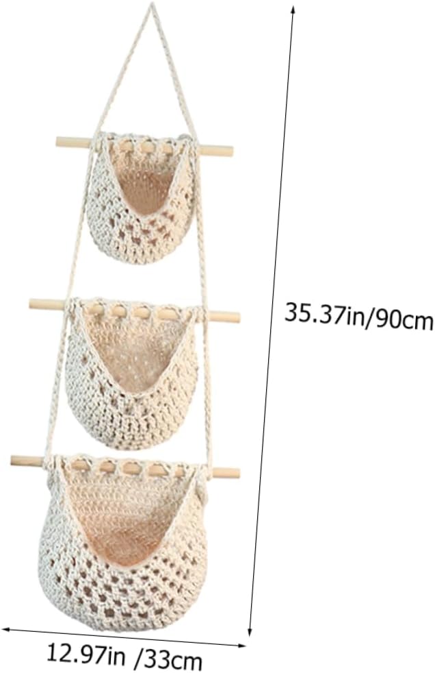 Package Include 2 x woven basket Characteristics -Size:90.00X33.00X10.00cm/35.37X12.97X3.93in fruit hanging basket -Material:Cotton rope hanging storage organizer -Color:White Kitchen Baskets - A nice housewarming , birthday or festival for your friends, families or colleague tier vegetable baskets. - This iron Hanging Fruit Basket can help you to keep your kitchen clean and tidy. In addition, it can add a textured touch to your space Hanging Kitchen Fruit Basket. - This hanging basket can well store and display your on the wall, allow you to easily access to them handwoven wall fruits basket. - The woven texture hanging basket provides good air circulation for fruits, to allow them to keep in good condition for a long time Hanging Baskets For Kitchen. - With good loading capacity, it will not easily crack, break or deform, fine workmanship its practicality and durability fruit vegetable storage basket.Goods Descriptionwall hanging organizer With good loading capacity, it will not easily crack, break or deform, fine workmanship its practicality and durability.Hand-made Hanging Basket The 3-tiered Hanging Fruit Basket can help you to space in the kitchen, keep your space clean, tidy and organized.Hanging Kitchen Fruit Basket Easily Hanging it at any place you want, suitable for placing bananas, onions, tomatoes, potato and much more
