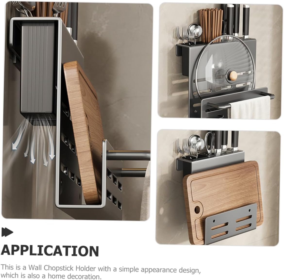 Package Include 1 x tableware rack 1 x hanging buckle 2 x spoon fork cups 1 x glue 2 x auxiliary sticker 2 x screws 2 x anchor bolts Characteristics -Color:Grey Utensil Holder For Storage -Size:27.50X21.00X15.00cm/10.81X8.25X5.89in Utensil Holder For Kitchen Wall -Material:Carbon steel Utensil Holder For Home -On this shelf, you can keep cooking tools (such as spoons or spatula) within easy reaching and within reach when needed Chopstick Holders. -The frame of this tableware rack is made of reliable material, which is and scratch . Wall Cutlery Holder -This Chopstick holder is practical and convenient, and you will have a experience in using it Kitchen Utensil Rack. -You can store chopsticks, forks and spoons. Your kitchen will not be messy again Utensil Accessory. -This is a Wall Chopstick Holder with a simple appearance design, which is also a home decoration Utensil Holders.Goods DescriptionCutting Board Organizer It is made of stable material, easy to clean, not only a chopstick holder, but also a helper.Utensil Holder For Storage This Chopstick Holder adopts modern style, and beautiful.Chopstick Holders Draining design, put in your kitchen utensils.Utensil Accessory The product is suitable for people to use all the time in the kitchen