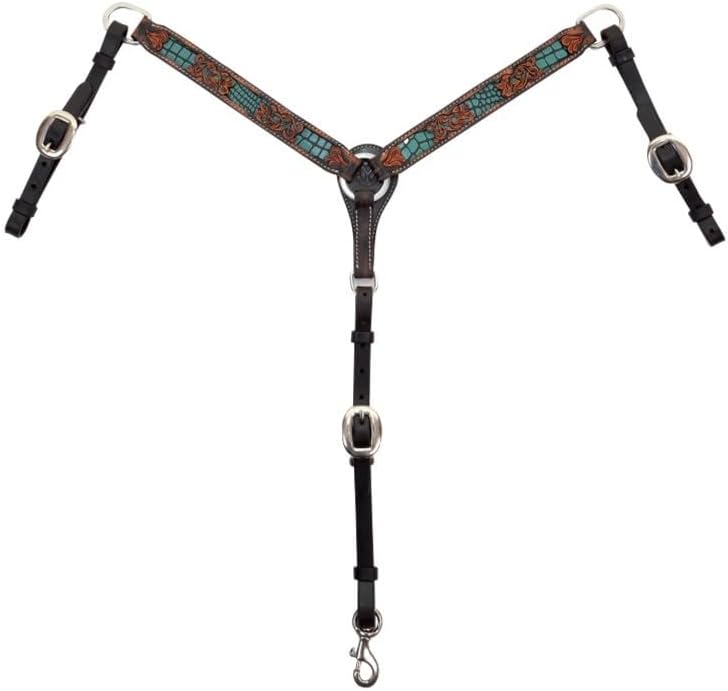 Stand out in this breast collar, with lightly distressed leather that matches any saddle and ties in perfectly to the inlays, in a smaller size for ponies and small horses.