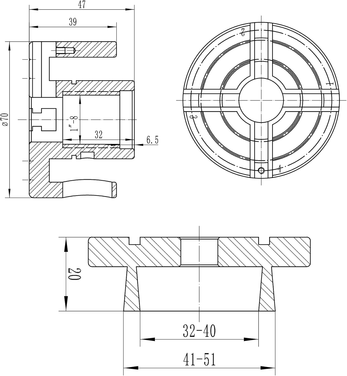 | Included Components | 2.75" 4 Jaw Key Self-Centering Chuck, Dovetail Jaws, Wood Screw, Two Nylon Washers, T Handle Allen Key |
