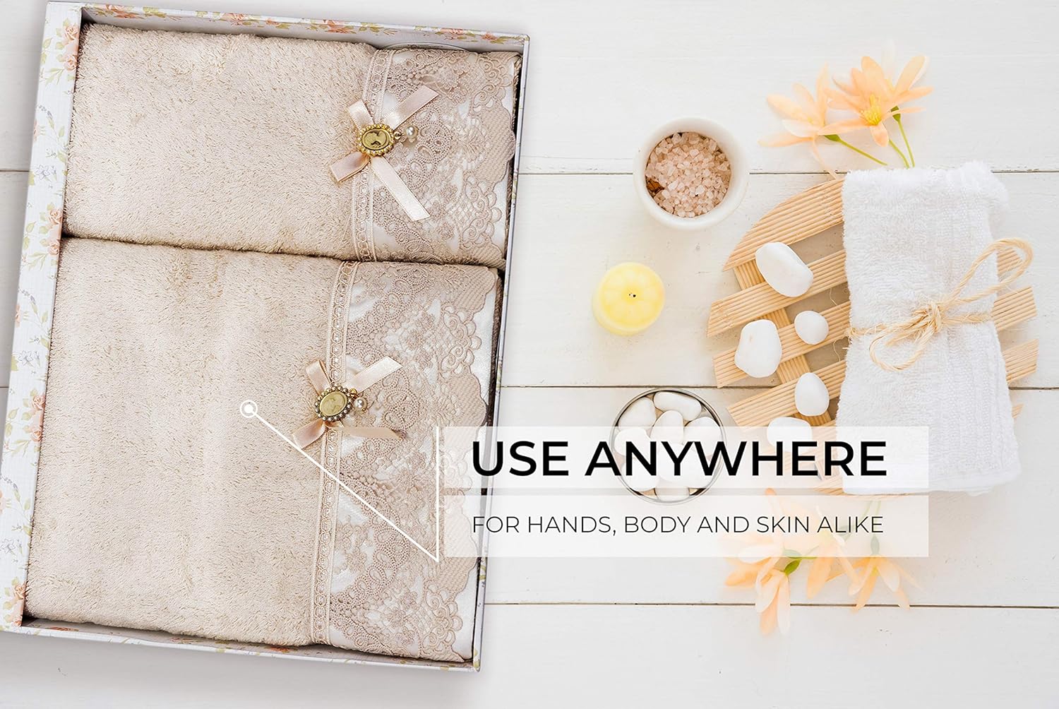 CONCETTI DI LUSSO Clara Guipure Embroidered Luxury Towels - Soft and Washable Turkish Bath Towels for Hands, Face and Hair – Set of 2 in Gift Box - Pastel Grey