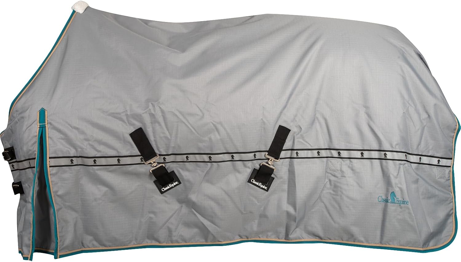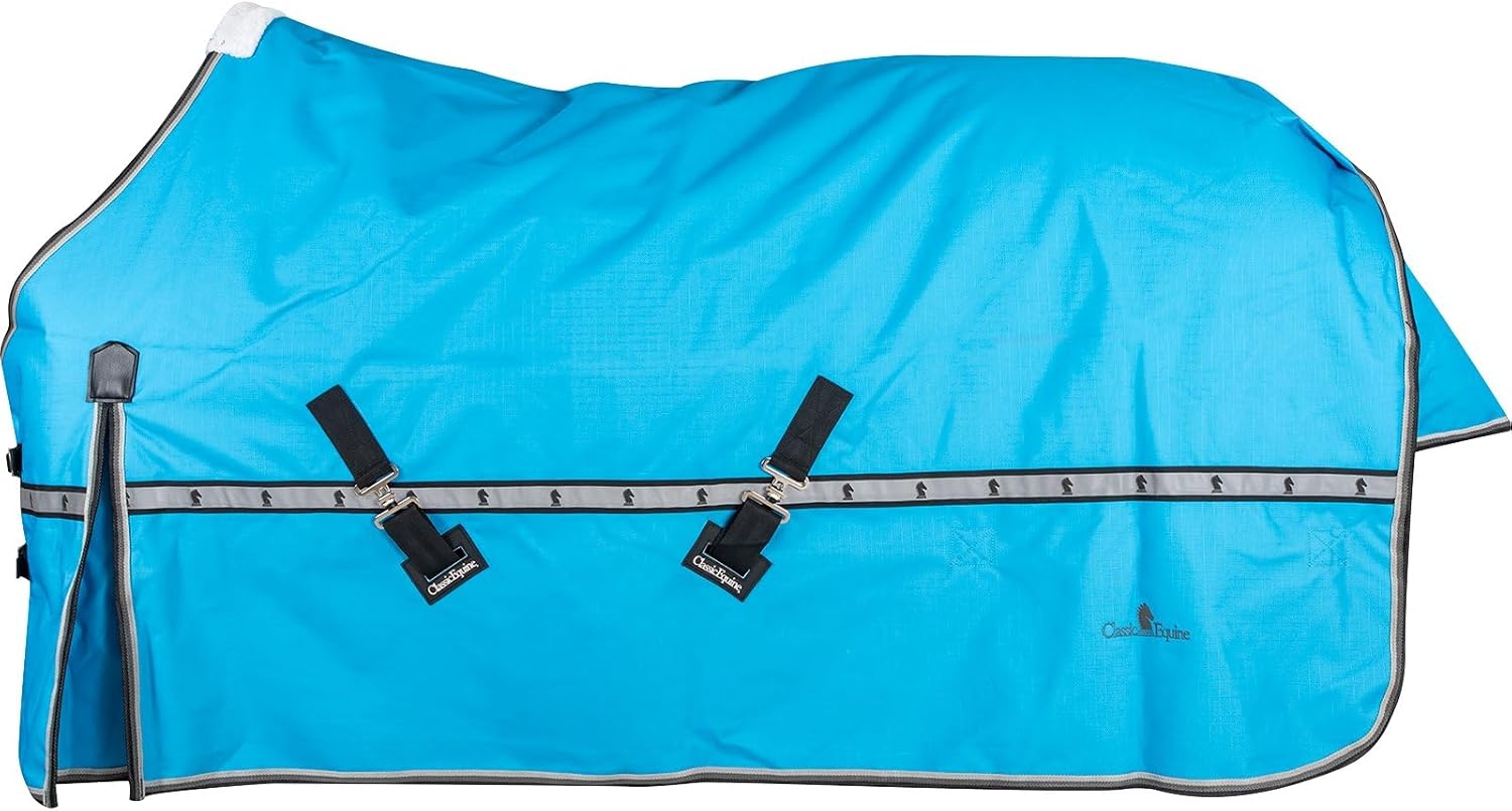 Classic Equine Horse BlanketWaterproof1200 Denier breathable ripstop outer shell300 grams fiberfill insulationShoulder darts for increased range of motionCross belly surcinglesNylon liningReplaceable nylon leg strapsCXB1019 1200 Denier breathable ripstop outer shell is waterproof and extremely durable. 300 Grams fiberfill insulation is ideal for colder climates, with nylon lining that polishes the coat. Contoured design helps keep horse blanket stationary while eliminating pressure points. Fitted shoulder darts and fleece lining eliminate rubbing. Nylon straps are replaceable, to greatly extend blanket life. Waterproof seam tape and rear tail flap provide superior protection against wind and rain. Reflective Knight Vision safety strip maximizes visibility in low light.SIZES: XS (69" - 71"), S (74" - 76"), M (77" - 79"), L (80" - 82"), XL (83" - 85")