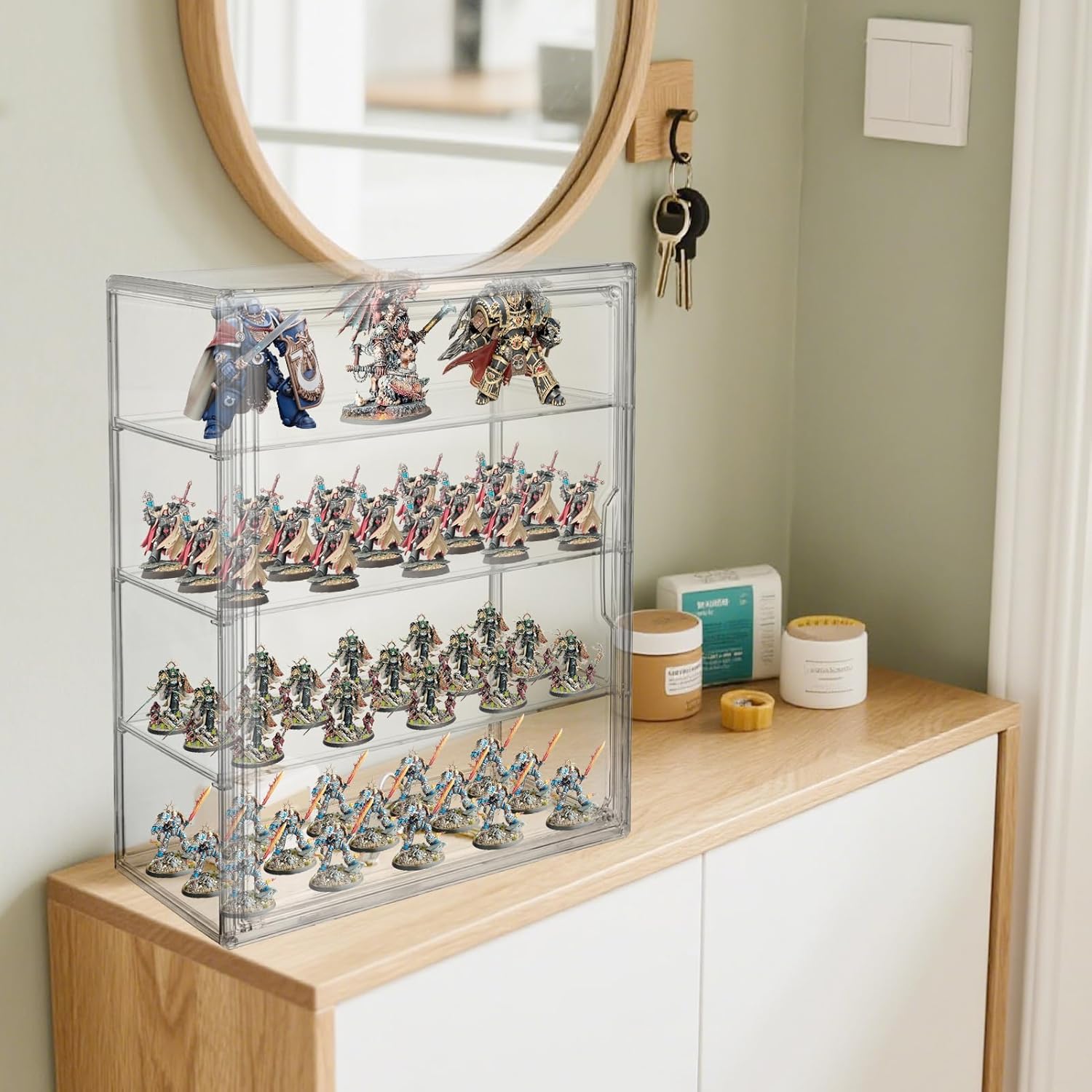 Features: The Miniature Carrying Case is perfect for collectors, featuring a clear acrylic design that showcases your Warhammer 40k and D&D miniatures while protecting them from dust and damage with its secure transparent door. It includes adjustable metal trays for customized storage.This case is essential for keeping your miniatures organized, safe, and accessible. Specifications: Material: Plastic Color: Clear Size: 15.7" × 11.8" × 9.8" Package includes: 1× Clear Acrylic Miniature Storage Case Notes: For manual measurement, please allow slight errors in size. The color may have a slight difference due to different screen displays.