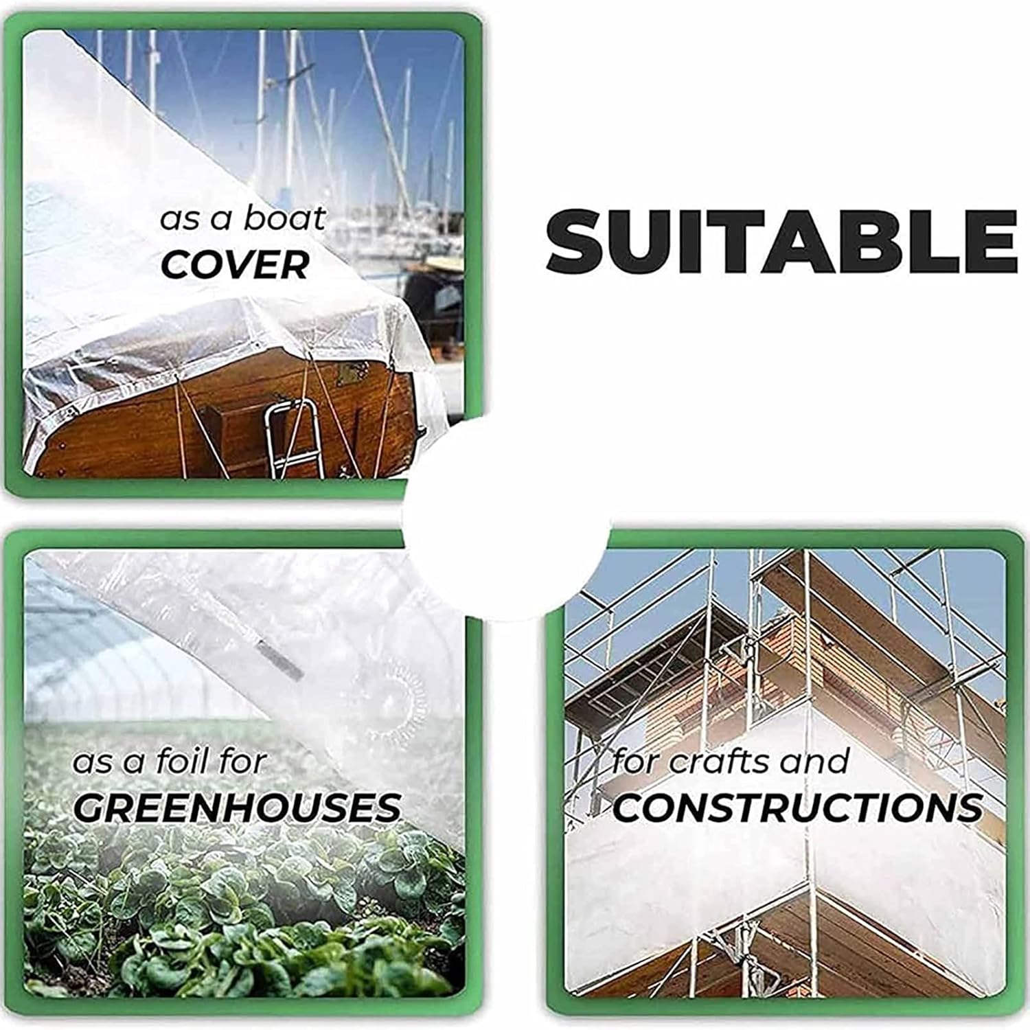 Brand:WZYJLydsName: Clear TarpaulinMaterial: PEThickness: 0.12mm/4.7milDistance between the eyelets: 50cm/19.69in(Customizable)Weight: 120G/㎡Waterproof Index: 100%Package1 x Garden Waterproof Curtain10 x Ball Bungee CordsNotice:Manual measurement, there is an error of 1-2cm, please understand, please refer to the actual size receivedSlight odor is normal and will disappear within two or three days; due to differences in light and personal understanding of colors, there will be slight color differences, subject to the actual product.(The size can be customized, please feel free to contact us to customize the size you need)