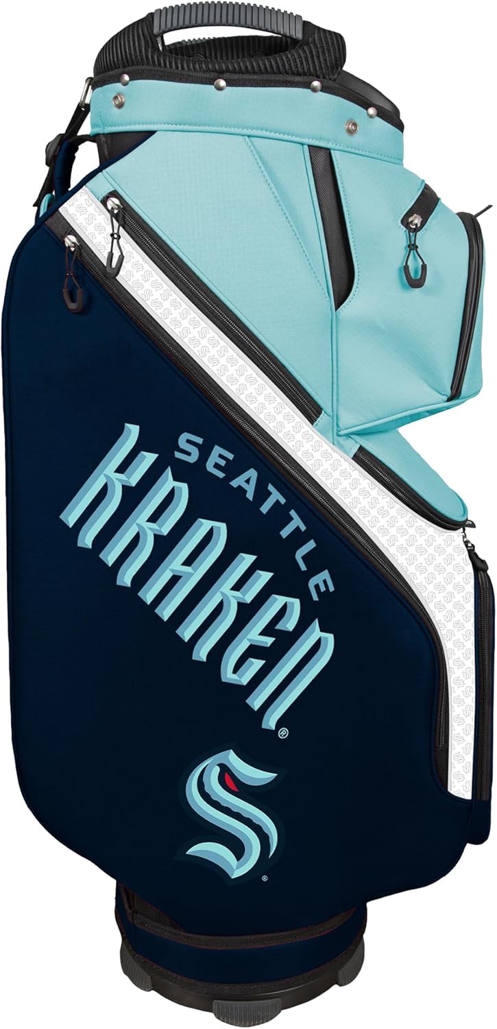 The Clubhouse Cooler Cart Bag brings fresh innovations, ample storage, and impressive durability. This next generation of golf bags from WinCraft was developed in collaboration with leading golf experts and representatives from professional and collegiate sports teams. Featuring prominent officially licensed marks and outstanding features, the Clubhouse is an essential choice for expressing your team loyalty on the course. Loaded with features, the Clubhouse Cooler Cart Bag will provide golfers years of joy, and it also features a thermal-lined cooler pocket with an insulated drainage port for convenience.