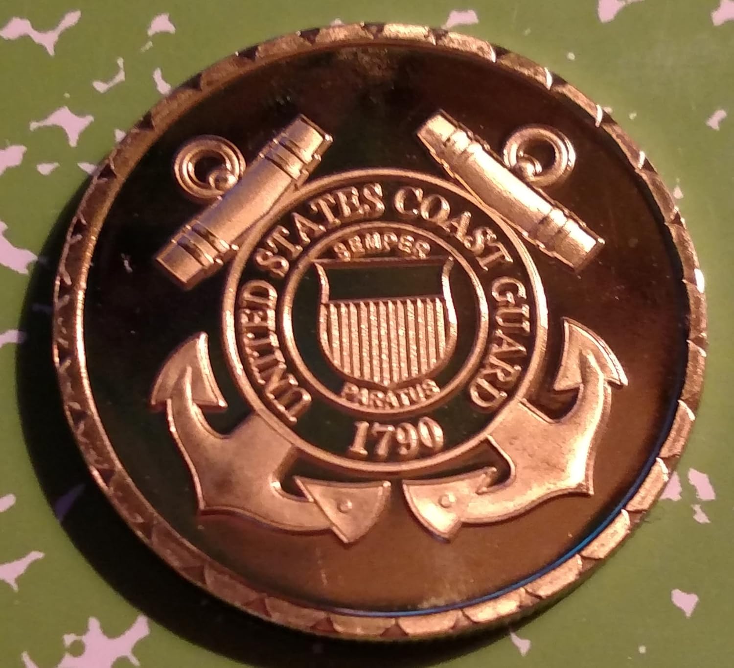 Beautiful Coast Guard Intelligence Military challenge art coins are about 1.6" diameter, one ounce and come in a protective capsule. These make great gifts or collectibles.