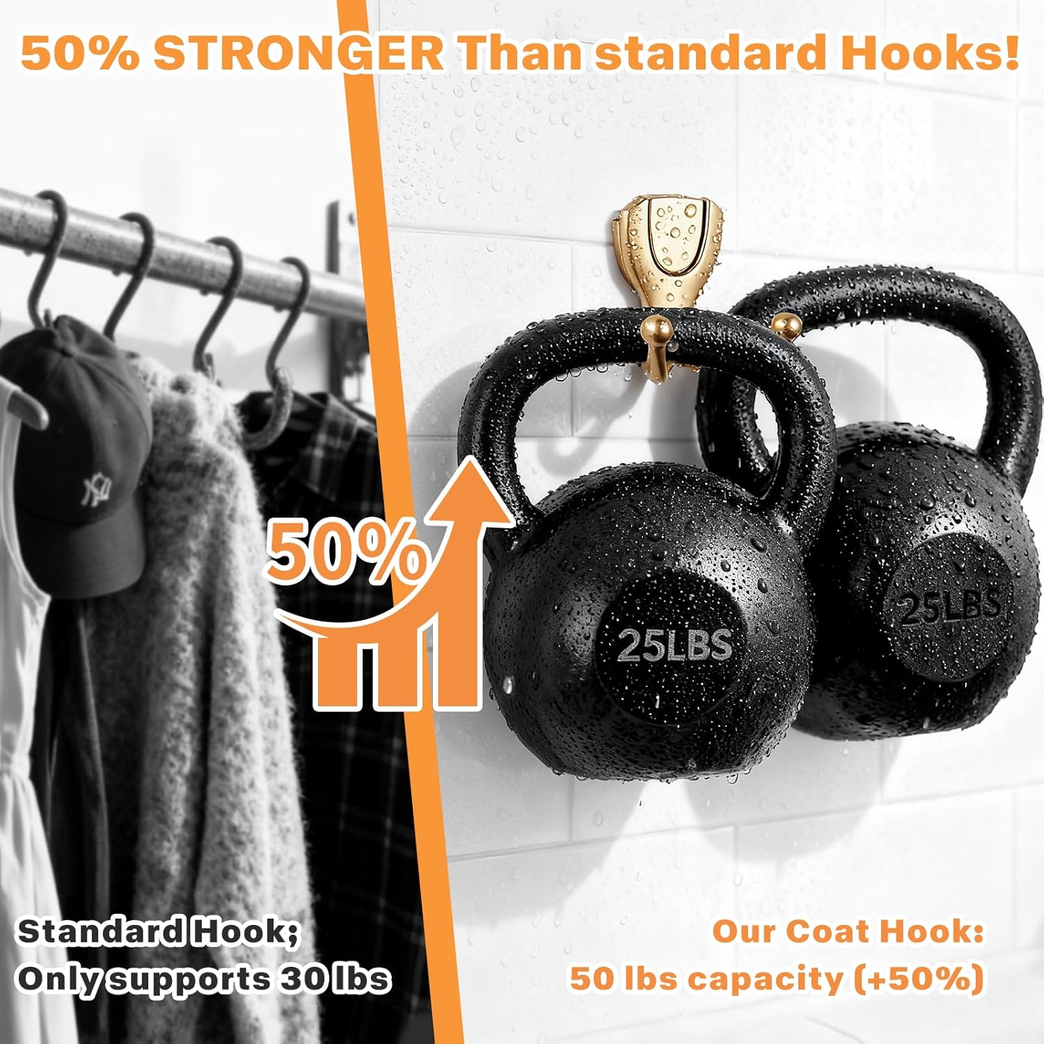 [Heavy Duty & Anti-Rust]: Engineered with reinforced zinc alloy for exceptional strength, supporting up to 50lbs per hook. Fully anti-rust and corrosion-proof, ideal for high-moisture areas like bathrooms and showers.