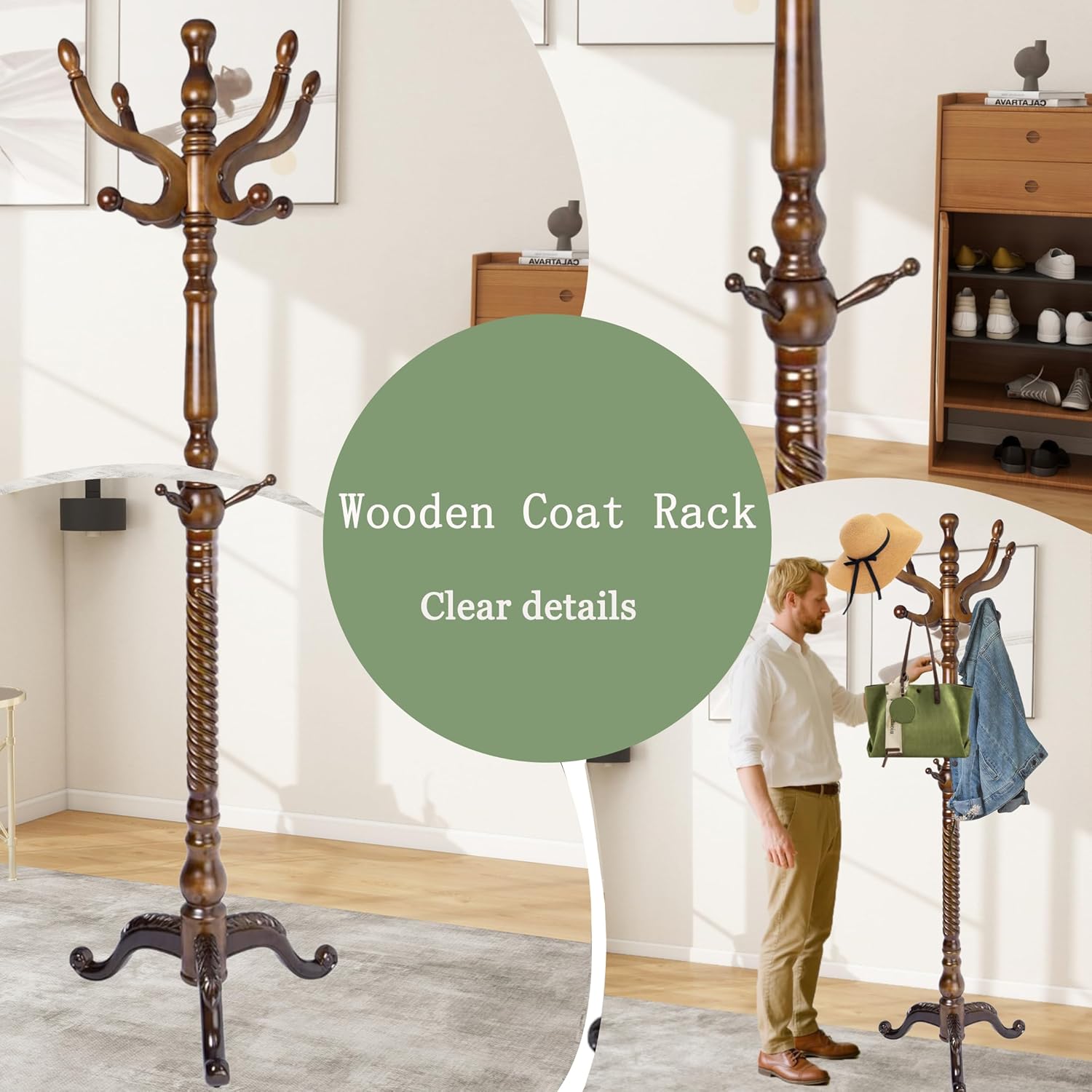 Outstanding design with high quality material, using colorful spray paint, suitable for any scene decorating style, make your home more beautiful is the solution to solve your messy bags and clothes problem, and add a touch of chic to your home decor. Easy assemblyQuick assembly without tools Strong rounded corner chassis is solid and practical with a small footprint Three heights that you can adjust to suit your needs without worrying about getting your clothes dirty Perfect for all ages! Screw-in design Durable metal screw holes in each wood section provide strength for the coat rack to withstand heavy loads of clothing Solid wood coat rack available in two colors Clothes rack made of natural birch, hard texture, clear texture, beautifully carved, using advanced environmentally friendly coating technology, the surface is naturally smooth, resin carving hooks, rounded edges and corners, carefully take care of your clothes, to protect your clothes from being scratched. It can be used to hang hats, umbrellas, coats