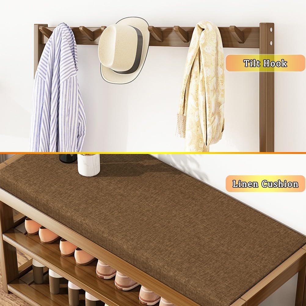Clothes and shoe racks are the perfect storage solution for your home. Specification: Name: Coat Rack Hall Tree Material: + MDF Color: Brown Dimensions: 48cm:18.9 x 11.4 x 66 in / 48 x 29 x 168 cm 58cm:22.8 x 11.4 x 66 in / 58 x 29 x 168 cm 64cm:25.2 x 11.4 x 66 in / 64 x 29 x 168 cm 76cm:29.9 x 11.4 x 66 in / 76 x 29 x 168 cm 97cm:38.2 x 11.4 x 66 in / 97 x 29 x 168 cm Note: 1. Please don't let children climb this product. 2. Bamboo products are made of natural materials, which will inevitably lead to different textures, knots, halos, gaps, and spots, but they will not affect beauty and use. 3. Please do not use corrosive detergent or hard objects for cleaning. It is recommended to use a soft cloth for wiping. 4. Bamboo products should not be exposed to the sun, or in a dark, and humid place for a long time to avoid cracking, deformation, and mildew. 5. Please note that our package only includes one Shoe racks and clothes racks, not other items. 6. Please allow the slight color difference caused by the shooting light and 1-3cm error due to manual measurement, and make sure you do not mind before ordering. This shoe rack is offers the highest level of efficiency for your shoe storage.