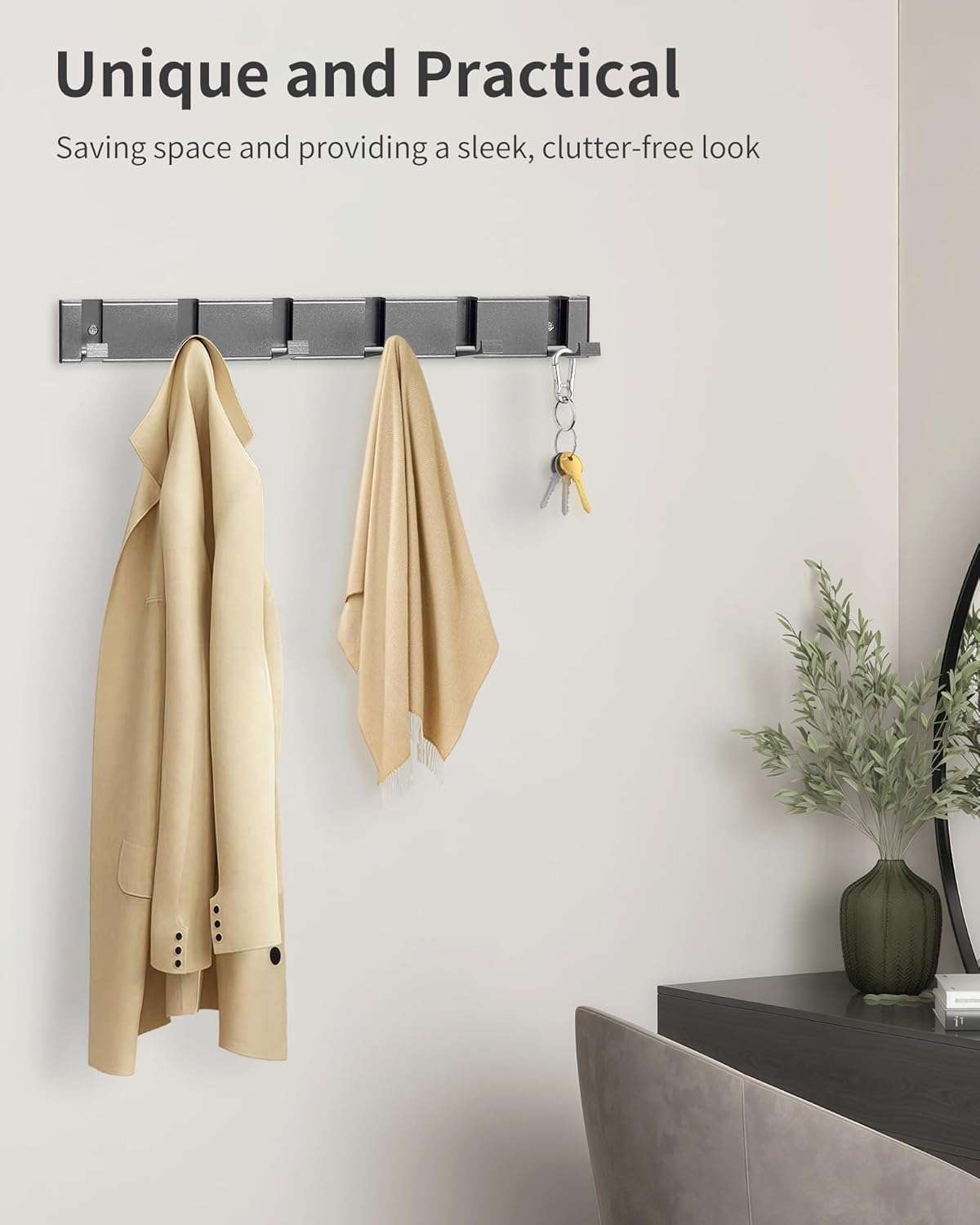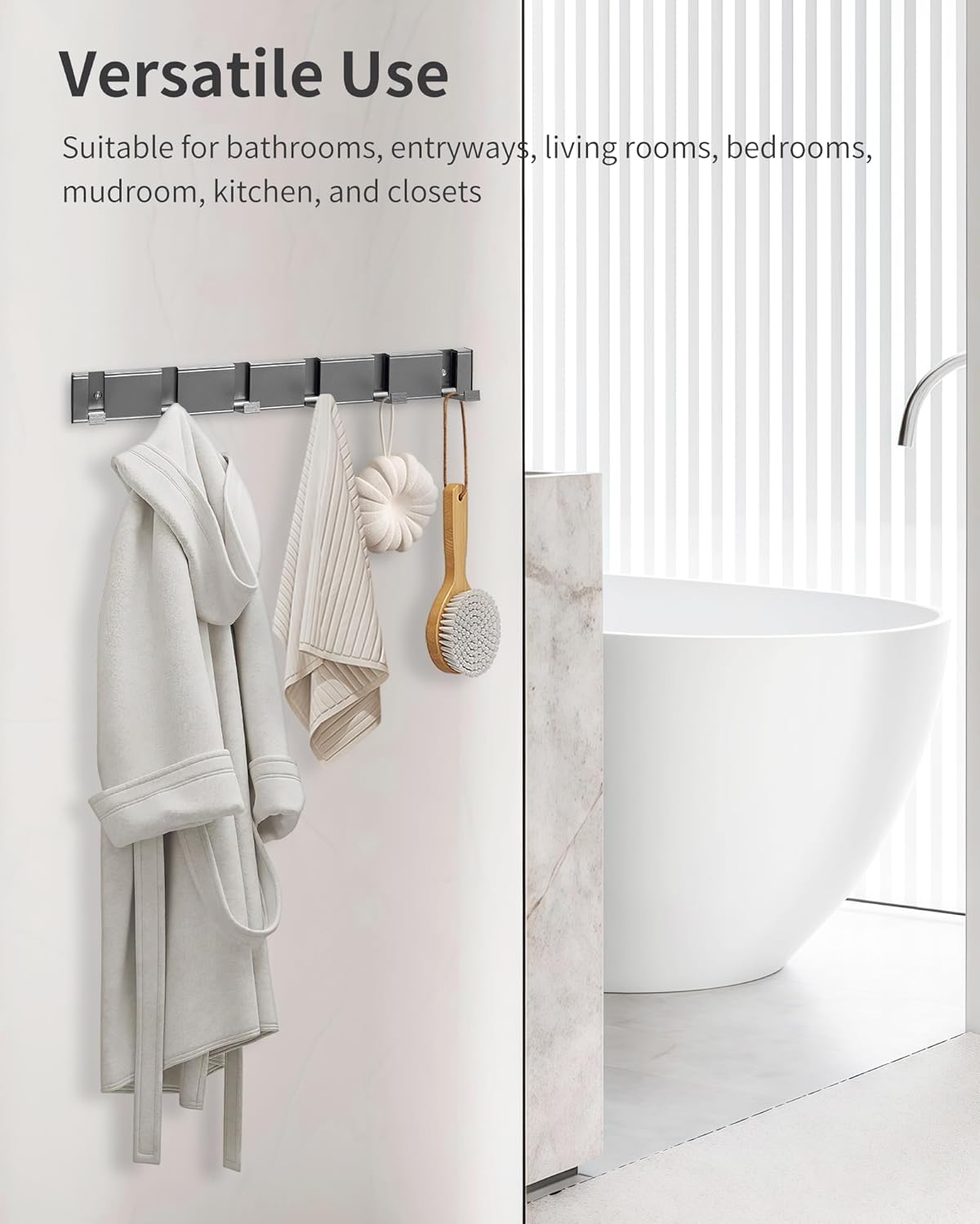 | Recommended Uses For Product | Hanging Items: Coats, keys, hats, purses, towels, robes, clothes, bags, backpacks, belts, dog leashes, etc., Suitable Locations: Bathroom, living room, bedroom, entryway, mudroom, kitchen, farmhouse, closet, etc. |