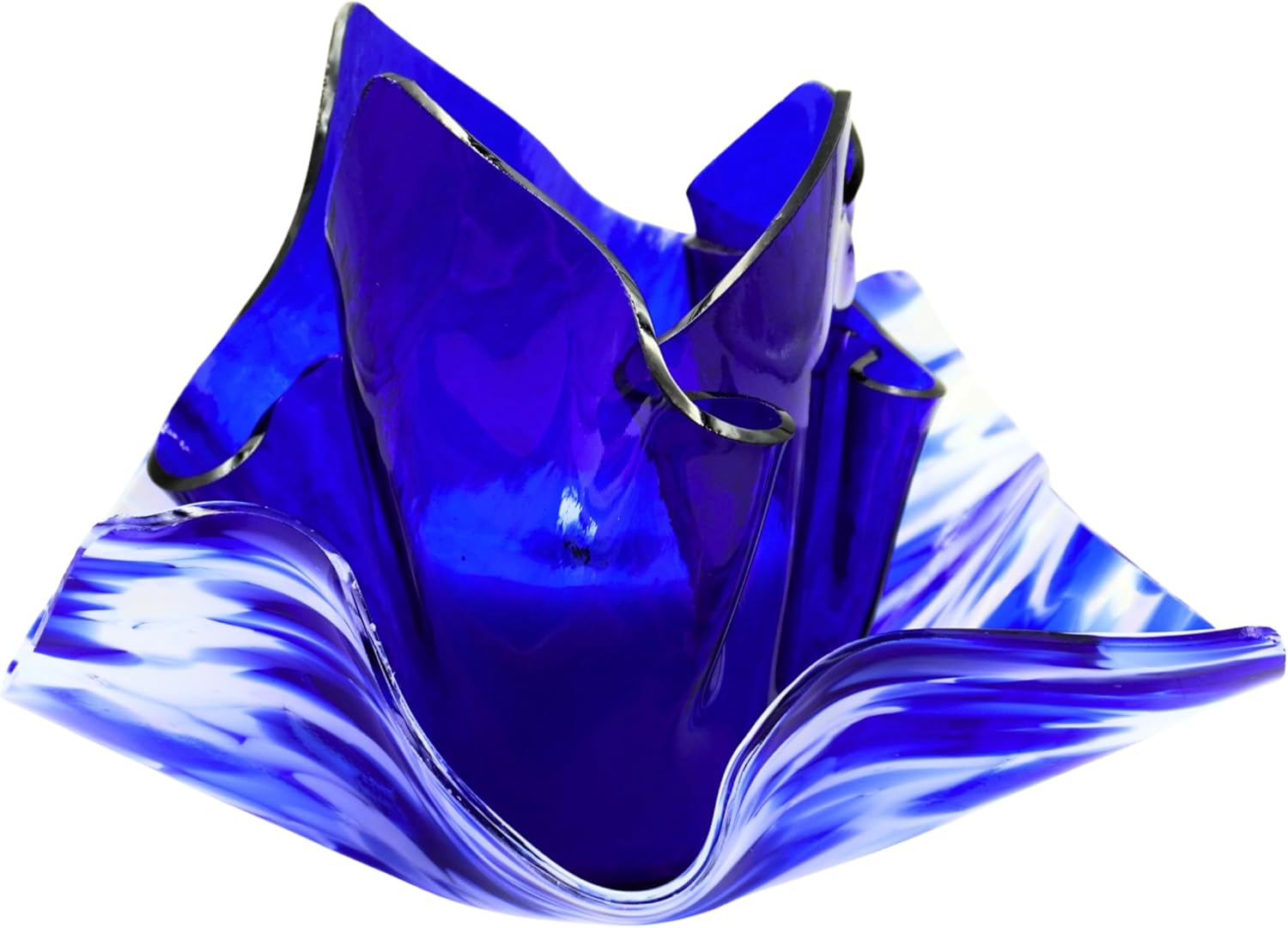 Cobalt Blue Cathedral Rough Rolled Vase Dish Set with Free Vase Candle Spring Rain Half Candle Refill 1 refillable Glass Vase, 1 Glass Dish and 1 Free Spring Rain Half Candle Refill. Our Vases and Dishes are Handcrafted from Art or Stained Glass – the same type of glass used in Stained Glass Windows. We use stock pictures for our listings so that we can offer high quality items at the lowest cost possible. Each Vase and Dish will have different color swirls and folds. Each Vase and Dish is unique. Our vases average between 5" to 7" tall and can be as wide as 5" at the top and 2" at the bottom. The dishes are between 8" and 9" across and no more than 4" tall. Spring Rain Refill Half Candle 4 oz | 25 Hour Burn Time | 2.5" width x 2" height. Spring Rain - Blend of Lemon, Lily, Jasmine, and Ozone. Designed to ONLY be burned in a Vase Candle Vase. The Candles and Melts are fresh and poured to order with fragrance all the way through the creamy, soft, uncolored paraffin/soy blend wax for excellent throw and clean-up. We use a Self-Trimming, Paper Core Wick, premium fragrances, and uncolored wax so that nothing gets in the way of a clean burn. No Coloring Added - the Wax is a Natural Creamy White Color.