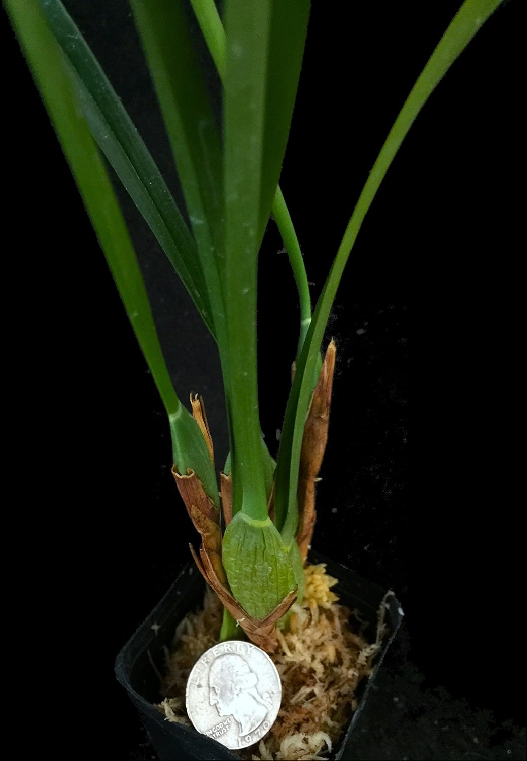 Maxillaria tenuifolia is commonly known as the Coconut Orchid for the enticing fragrance its flowers produce. It is very popular amongst orchid collectors, and for good reason. A small plant can produce several flowers per blooming and will have you thinking of tropical sunsets on a white sandy beach. This orchid is very easy to grow, and adaptable to any temperate conditions (avoid freezing cold). In nature, it grows in a geographic area ranging from Mexico to Costa Rica. It can handle bright light, but will do fine in lower light conditions as well. Any window in the home that receives light will make it happy. The long, thin leaves also make for an attractive houseplant when it is not in bloom. You can plant it in any kind of media, including orchid bark (typically fir or pine bark), sphagnum moss, coconut husk, or even grow them mounted. Water often enough to make the media moist, but allowing some drying out in between waterings is OK. Maxillaria tenuifolia is a great orchid for beginners and would make a great gift for someone who is looking for an orchid off the beaten path! Please note: these plants are divisions from larger plants, and some of the older bulbs may appear a bit shriveled. This is completely natural, as the older bulbs are water storage organs for the plant to draw upon during dry periods. New bulbs mostly grow during spring and summer and will swell up quite nicely if you keep the plant well-watered. Flowers are typically produced by bulbs at least one season old. PLEASE NOTE: Media may be dry at time of arrival due to variations in watering schedule and seasonality, but periods of drying out are fine and a good thing for this plant, as cycling between dry and wet helps it (and many orchids) grow better. Please note that plants are not in-bud/bloom when shipped..
