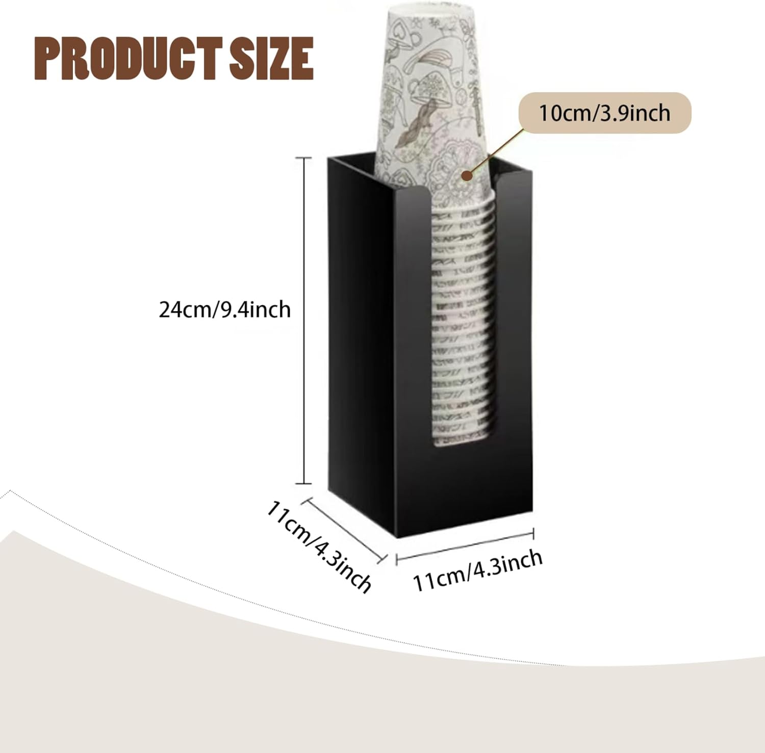 Description: Keep your coffee cups and lids neatly organized with this mirror effect acrylic coffee cup holder. Designed for spaces with limited room, this 4.4x4.4x9.5-inch holder fits cups and lids with a diameter of less than 10 cm/3.94 inches. Whether for your kitchen, café, deli, or restaurant, it keeps everything in place for easy access. Its sleek mirror finish adds a modern touch to your space, making it perfect for both professional and home environments. Say goodbye to clutter and make coffee prep effortless! Feature:. Coffee Cup Holder. Color: Black. Material: Acrylic. Size: 11.2x11.2x24 cm/4.4x4.4x9.5 inch. Can hold cups and lids with a diameter of less than 10 cm/3.94 inch. Note: 1. Due to different light conditions,please allow slight deviation for color. 2. Please allow 1-2 cm/ 0.39-0.78 inch errors due to different manual measurement. Package Including 1PC * Coffee Cup Holder
