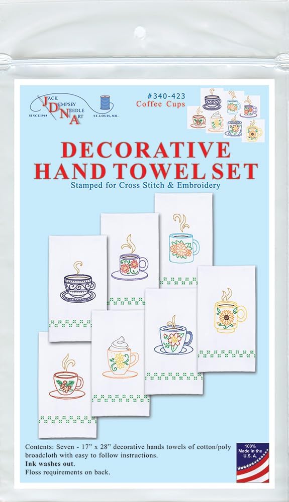 Enhance your home with with our Coffee Cup series of Decorative Hand Towels. Each towel is adorned with beautifully detailed coffe cup with flowers patterns, bringing a touch of nature's elegance to your daily routine. Whether you're an experienced embroiderer or just starting out, this kit contains seven 17" x 28" towels, embroidery design guide and floss requirement list.