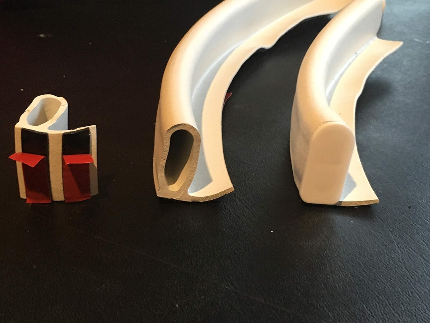 Our Collapsible Water Dam or Shower Water Retainer controls your shower curtain and water from escaping out of your roll-in or barrier-free shower stall. Ideal as a water guard, water stopper, water barrier or a retainer for walk in shower stalls. The durable rubber floor threshold will help hold a shower curtain in place for curb less shower entry, roll in , zero shower transition, or no lip shower stalls designed for wheelchairs Stands 1.25 inches but collapses to just 3/8 inch when stepped on or rolled over, returning to its original height. The shape of this shower floor threshold hold a shower curtain much better than others because of it shape making it an ideal shower curb, ledge or sill.
