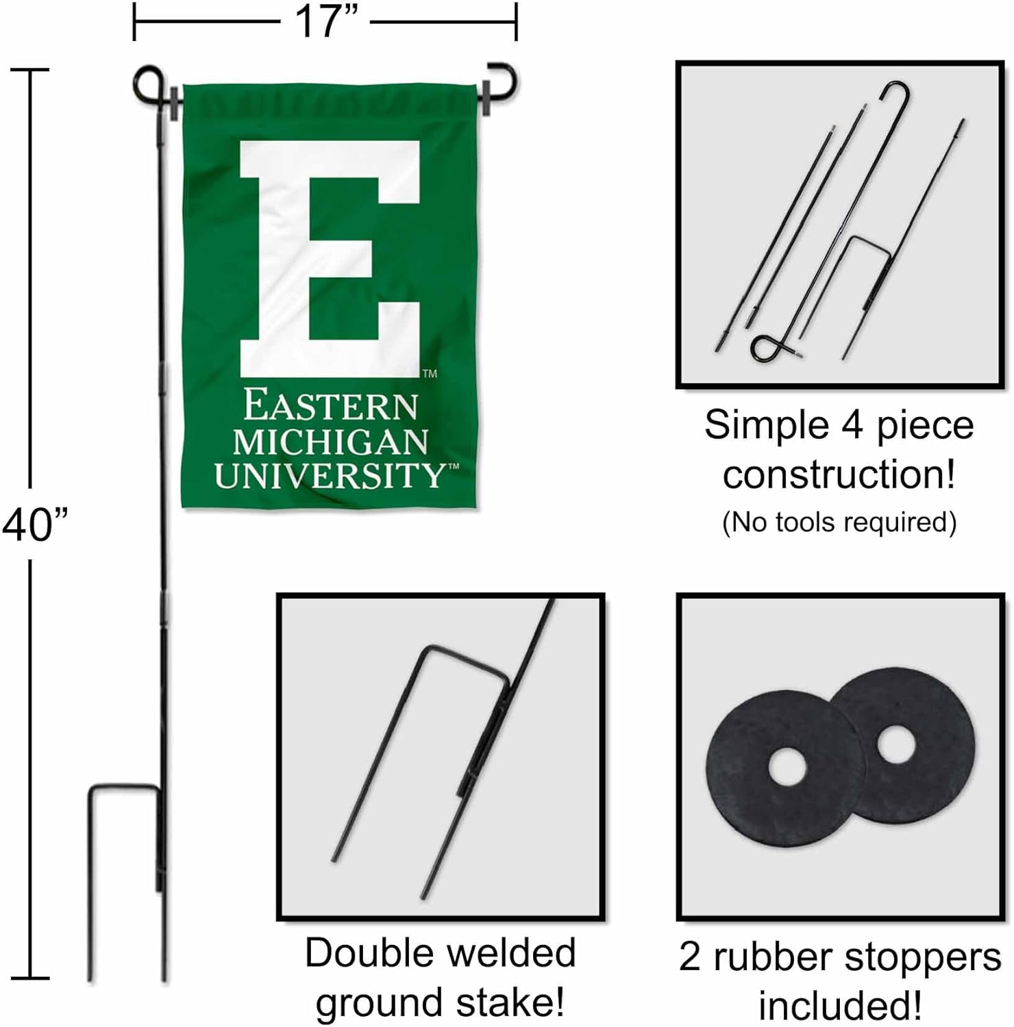 Team Garden Flag and Flag Stand Pole Holder Set is an ideal set for your yard, garden, walkway, mailbox, or home entrance. This bundle includes your selected 13x18 inch Double Sided Garden Flag along with a Sturdy Steel Powder Coated Garden Flag Stand with 2 included Rubber Stoppers. The garden flag measures 13x18 inches, is made of 2-Ply Polyester with sewn-in liner, is Double Sided Screen Printed, has a top pole sleeve for inserting the included Garden Flag Holder. The Garden Flag Stand measures an assembled height of 40 inches and has a flag crossbar width of a large 17 inches. Also, the stand is made of steel, is powder coated black for rust resistance, and the ground stake is made with double welds for extra durability. A unique gift, our set is ready to fly and no tools are needed for assembly.