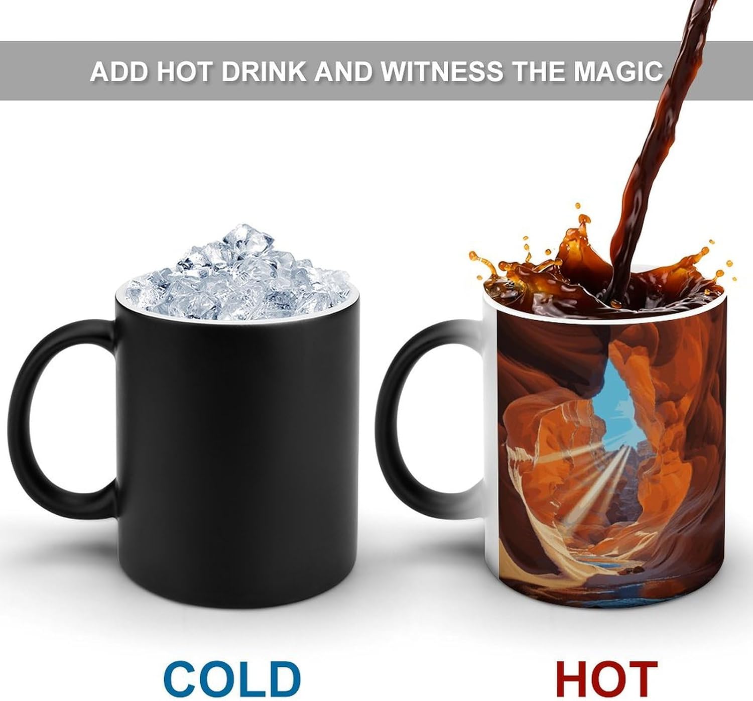 The personalized color-changing cup is made of ceramic, which feels as soft as jade and gives people a comfortable and friendly texture. Its good heat preservation performance can lock the temperature of coffee for a long timeFunny pattern print design, when filled with hot water, the cute pattern will appear and the colors will become bright.This color changing art coffee tea mug are a fun and unique addition to any home or office, adding a touch of fun to any table setting