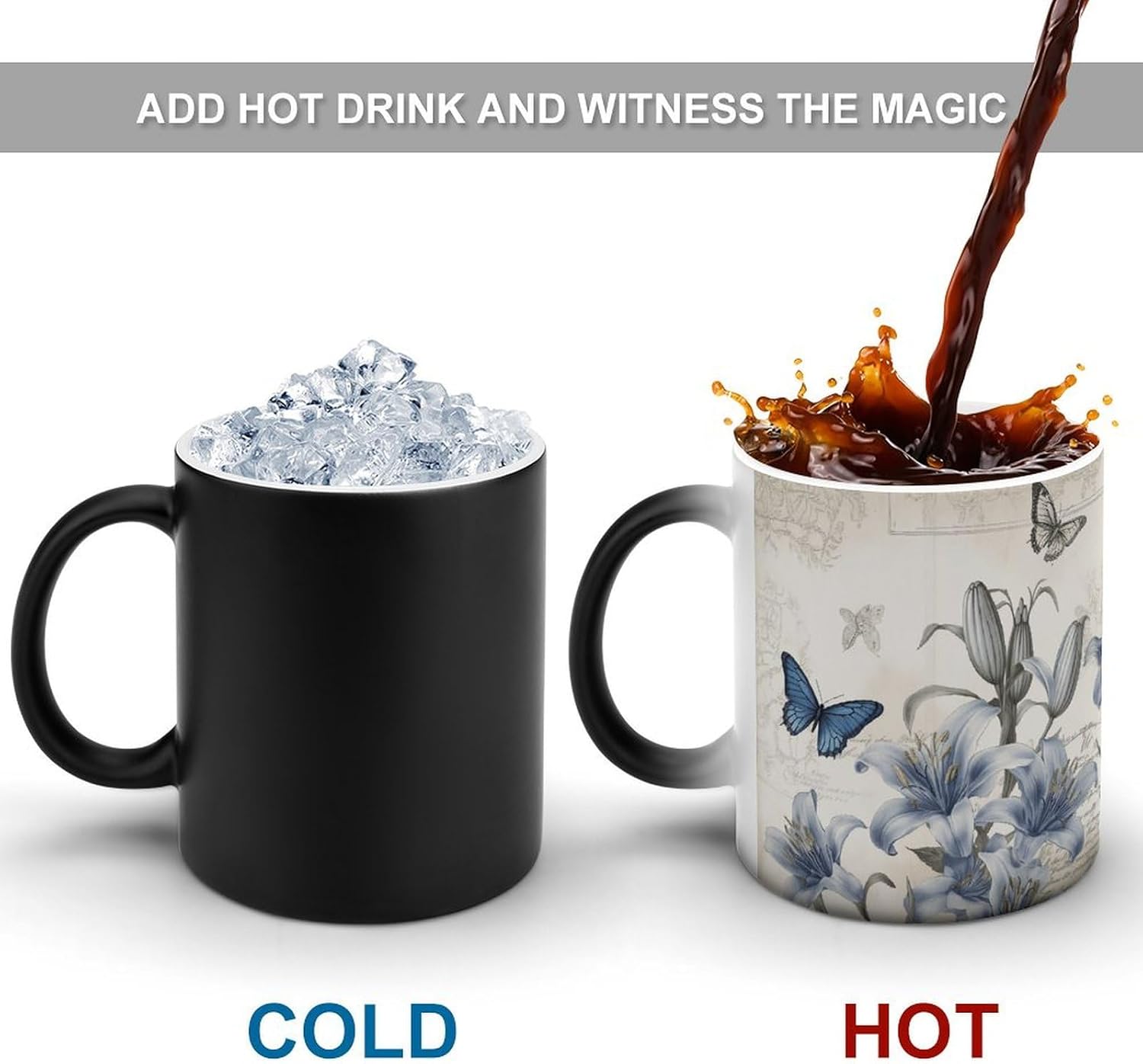 The personalized color-changing cup is made of ceramic, which feels as soft as jade and gives people a comfortable and friendly texture. Its good heat preservation performance can lock the temperature of coffee for a long timeFunny pattern print design, when filled with hot water, the cute pattern will appear and the colors will become bright.This color changing art coffee tea mug are a fun and unique addition to any home or office, adding a touch of fun to any table setting