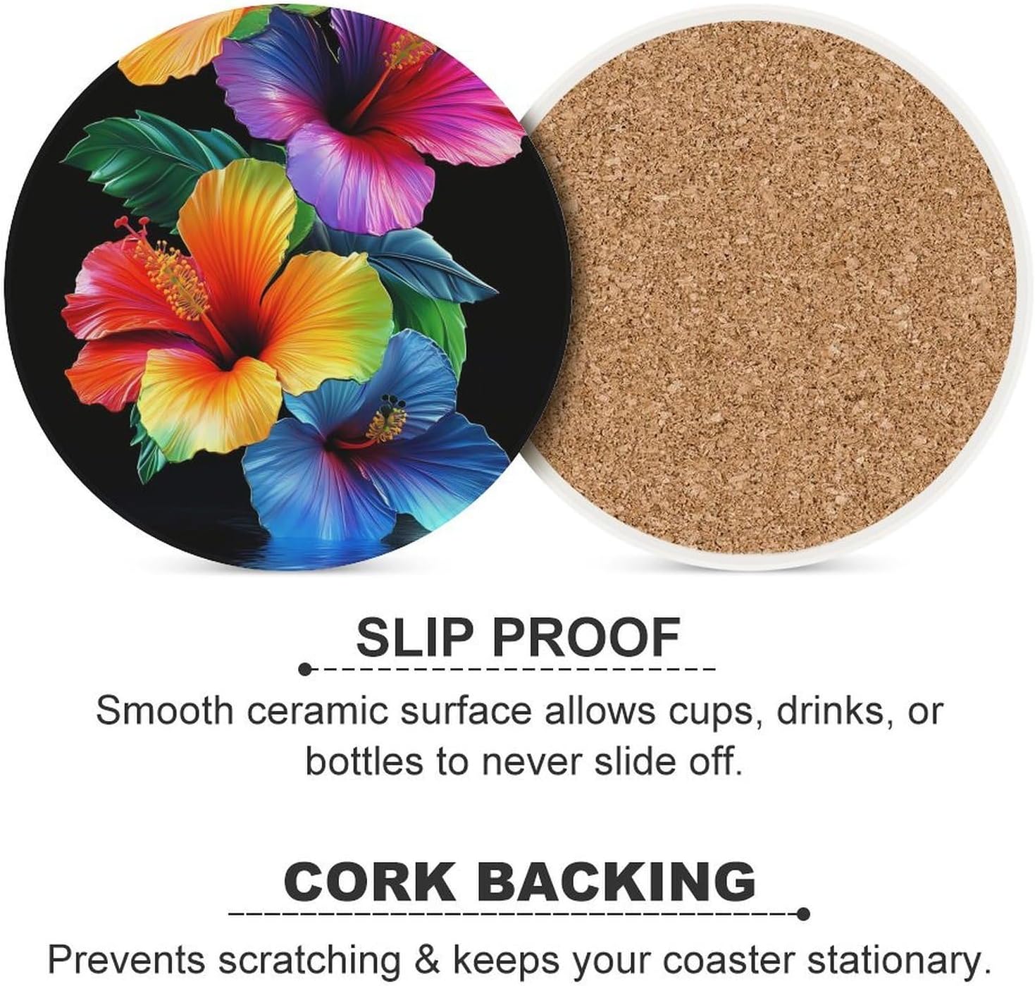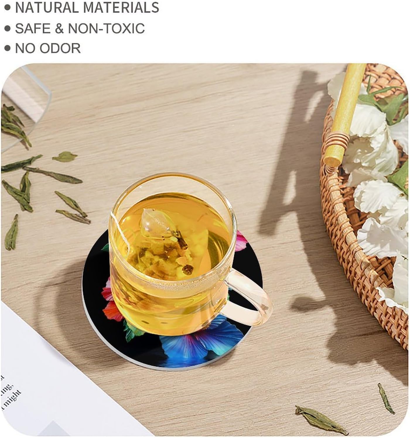 Cute Printed Round Drinks Absorbent Ceramic Coaster with Cork Base Suitable for Kinds of Mugs, Cups, Prevent Tabletop Wear And Scratches, and is Easy to Clean