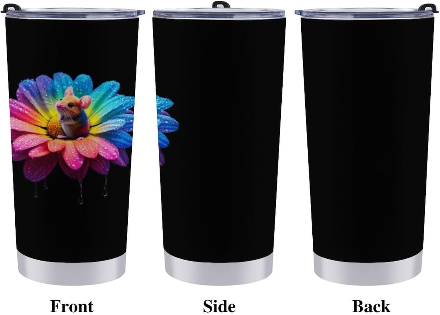 Colorful Rat Daisy Flower Travel Coffee Mug Stainless Steel Insulated Tumbler Water Bottle Tea Cup for Home Office