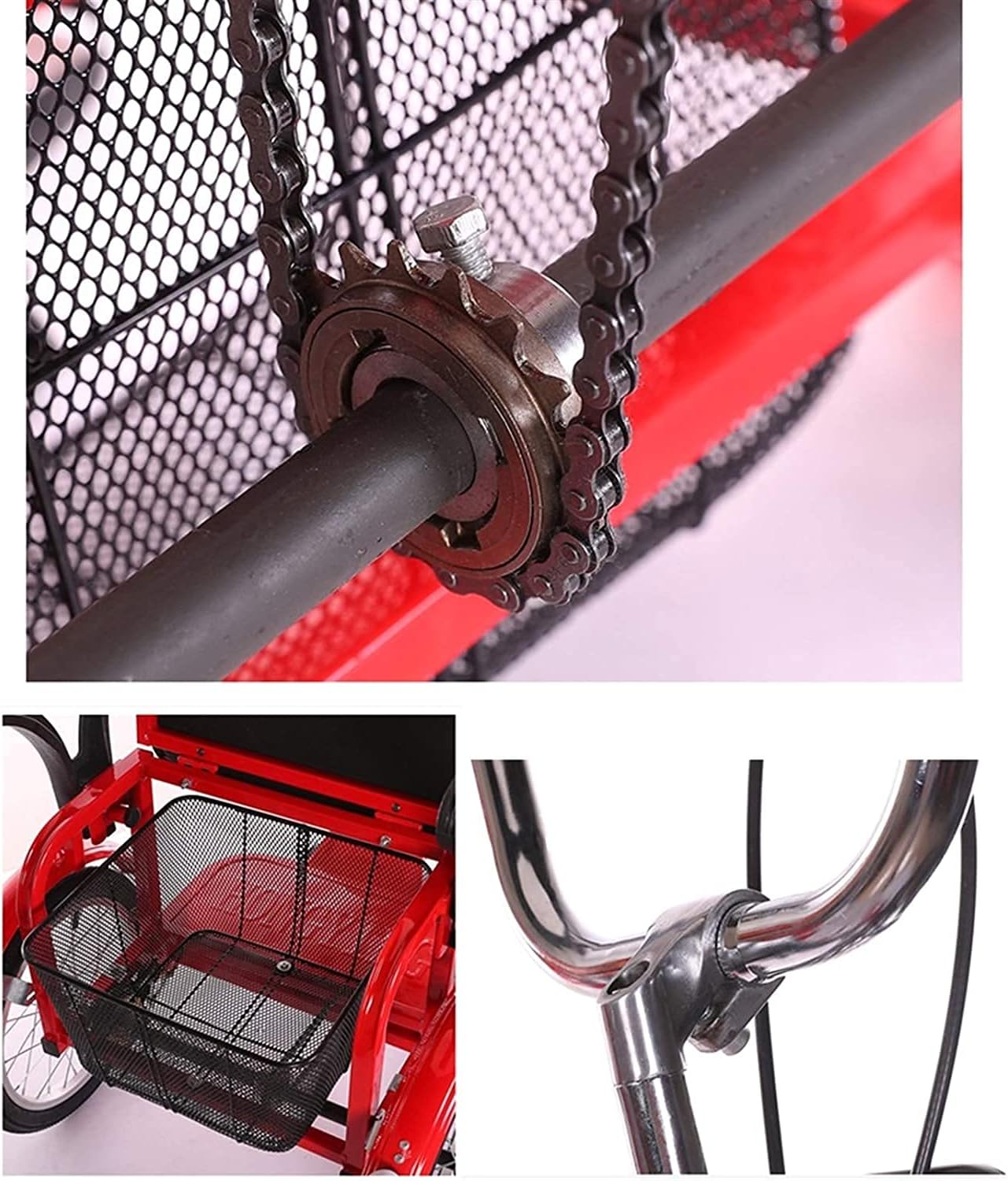 ※(. ? ? ?)※ Bicycle is the best gift for parents and family. Your wife can use it to pick up and drop off children. ※(. ? ? ?)※ Please note: You need to install it yourself, the installation is relatively simple, you can contact us if you have any questions. Since the tricycle is a large product, the product may be slightly scratched during transportation. If you mind, please don't buy. Specification: Product name: Mini adult tricycle Color classification: red, black Applicable object: adults/elderly Product size: 145 * 58cm Rider's height: 130-170cm Product load: 130kg Tire size: 16 inches Back basket size: 40 * 40 * 30cm Wheel diameter: 40 cm Vehicle weight: 23KG Folded size: length 83CM Body width: 58CM Handlebar off the ground: 90-101CM adjustable The seat is off the ground: 57-82CM adjustable Product advantages: convenient/travel/anti-rollover/loading Configuration: High-carbon steel thickened e, non-slip wear-resistant rubber tires, safe and sensitive braking, adjustable seats and handlebars, and large rear basket ( metal material) The package includes: 1×Adult tricycle Note: You need to install it yourself, but don't worry, it's very easy ※(. ? ? ?)※ You can contact us at any time if you have any questions in the process of buying products, we will ask you to answer your questions, and hope that you have a happy shopping and bring you a happy shopping experience!