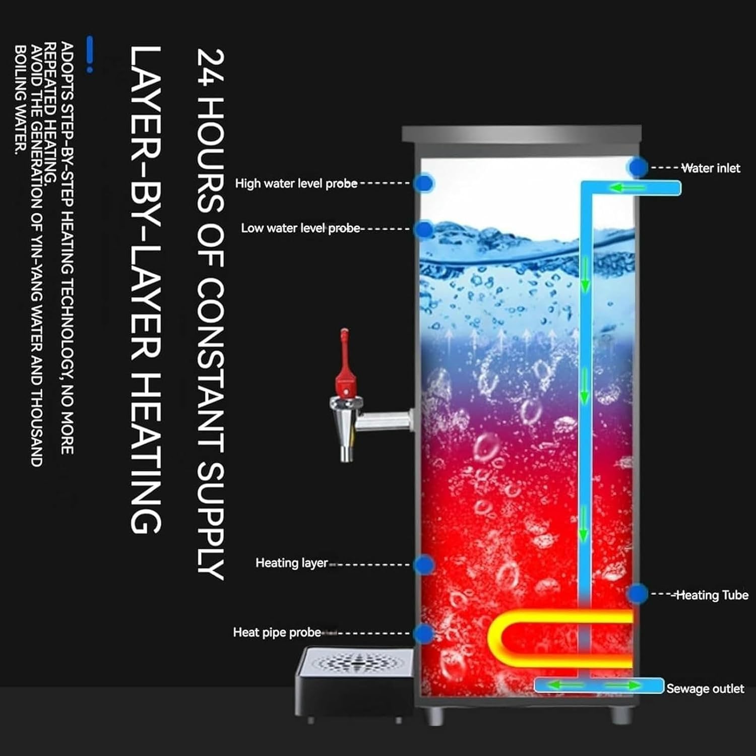 Voltage: 110V/220V Rated power: 3kW Rated frequency: 50/60Hz Inner tank capacity: 20L Water output: 60L/H Packaging size: 395x245x725mm Product size: 185x365x680mm ******* Package: 1x electric hot water boiler 1x user manual