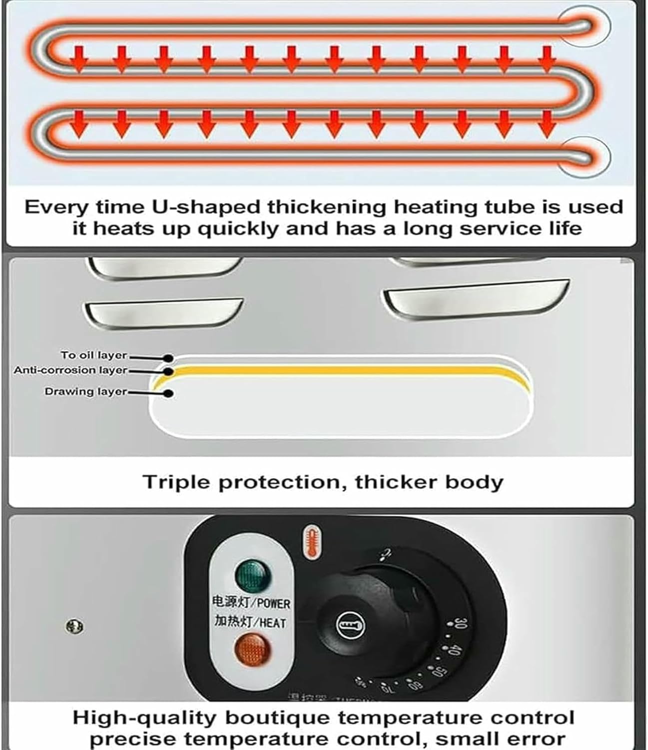 Usado heater tube in a U -shaped, fast heating and long shelf life.Anti-scaliosity mango to avoid direct contact with the body and prevent burns.Specifications: Name: Board of the hot springs.Temperature control range: 30-110 degrees.Plug: 10 A. Voltage: 110-220 V. Power: 2600 W. Capacity: 30 x 24 x 15 cm.Production: 60-120 eggs/h.Capacity: 60 eggs.Net weight: 6 kg.The package includes: 1 booth of the hot springs.