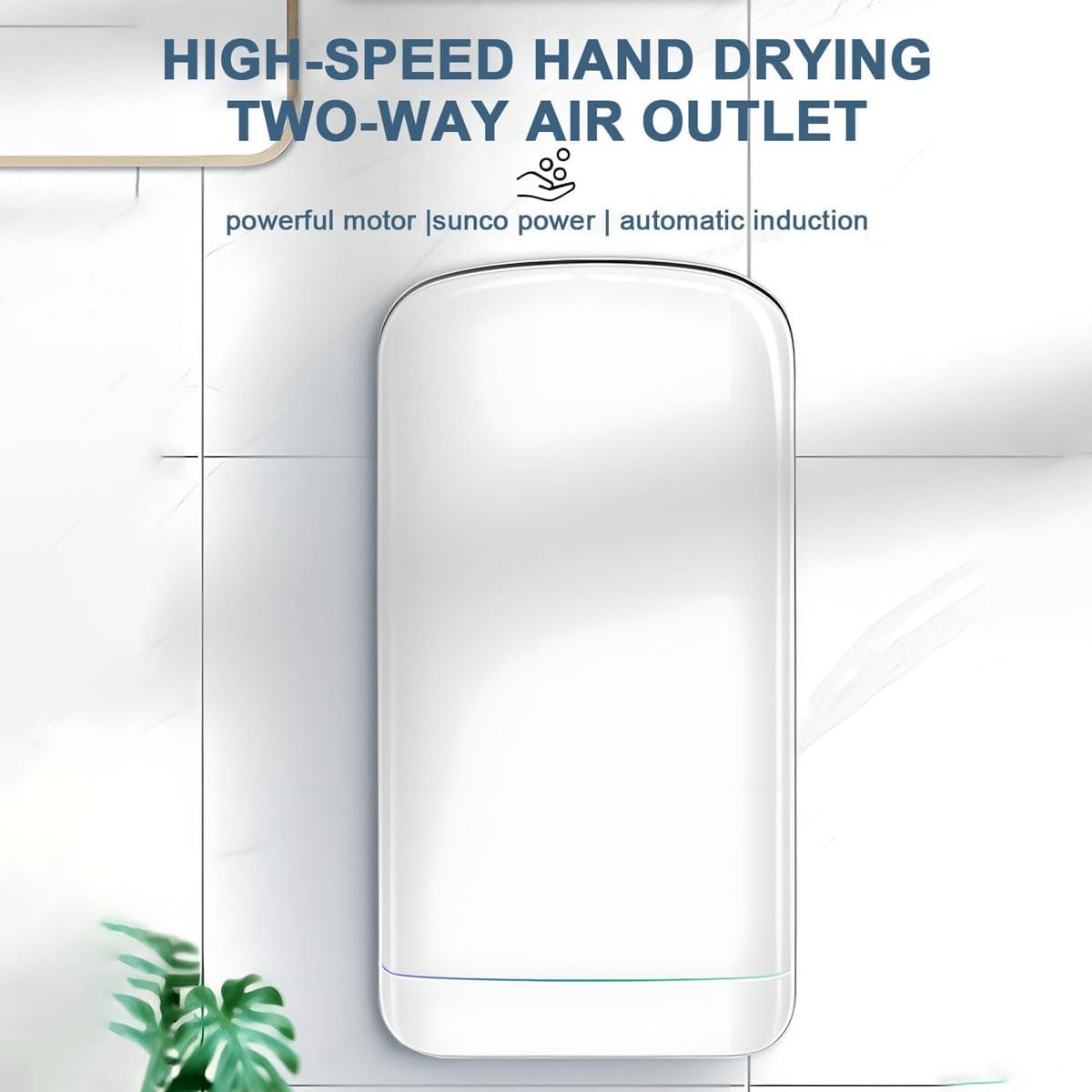 Features:There is no need to touch the dryer with your hands, automatic sensingIntelligent cold and warm air adjustment, switch the heating switch to enjoy warm airThe high-power motor is safe and low-noise, and combined with the turbocharged fan, it has good performance and is more sturdyFive major protections: overtime protection, motor resistance protection, overheating protection, short circuit protection and overcurrent protectionSpecifications: Name:Hand DryerPower: 1800 WColors: White, GreyMaterial: ABSSpeed: 342 km/hWaterproof level: IPX2Function: UV sterilizationSize: 297*163.9*574 mmPackage Includes:1 * Hand dryer1 * Instruction manualNotes:1. Due to manual measurement, 2-3cm deviation is allowed.2. Different monitors have different calls, and the product color is subject to the actual product