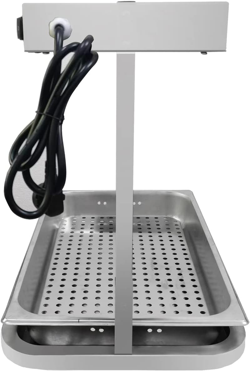 French Fry Food WarmerPortable French fry warmer designed to be used for holding french fries and other fried food hot on the buffet line or in the kitchen.french fry warmers have 500 watts heating power shining over a food pan to keep hot food warmProduct SpecificatioinPower:500WOverall Dimension:13.77"x21.65"x17.71"