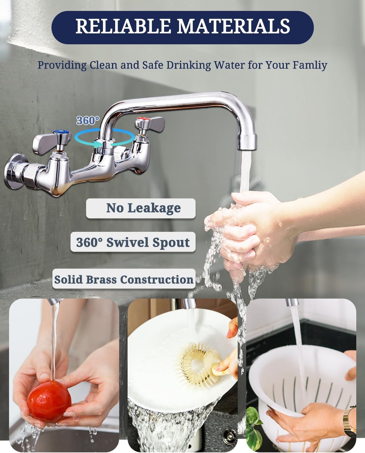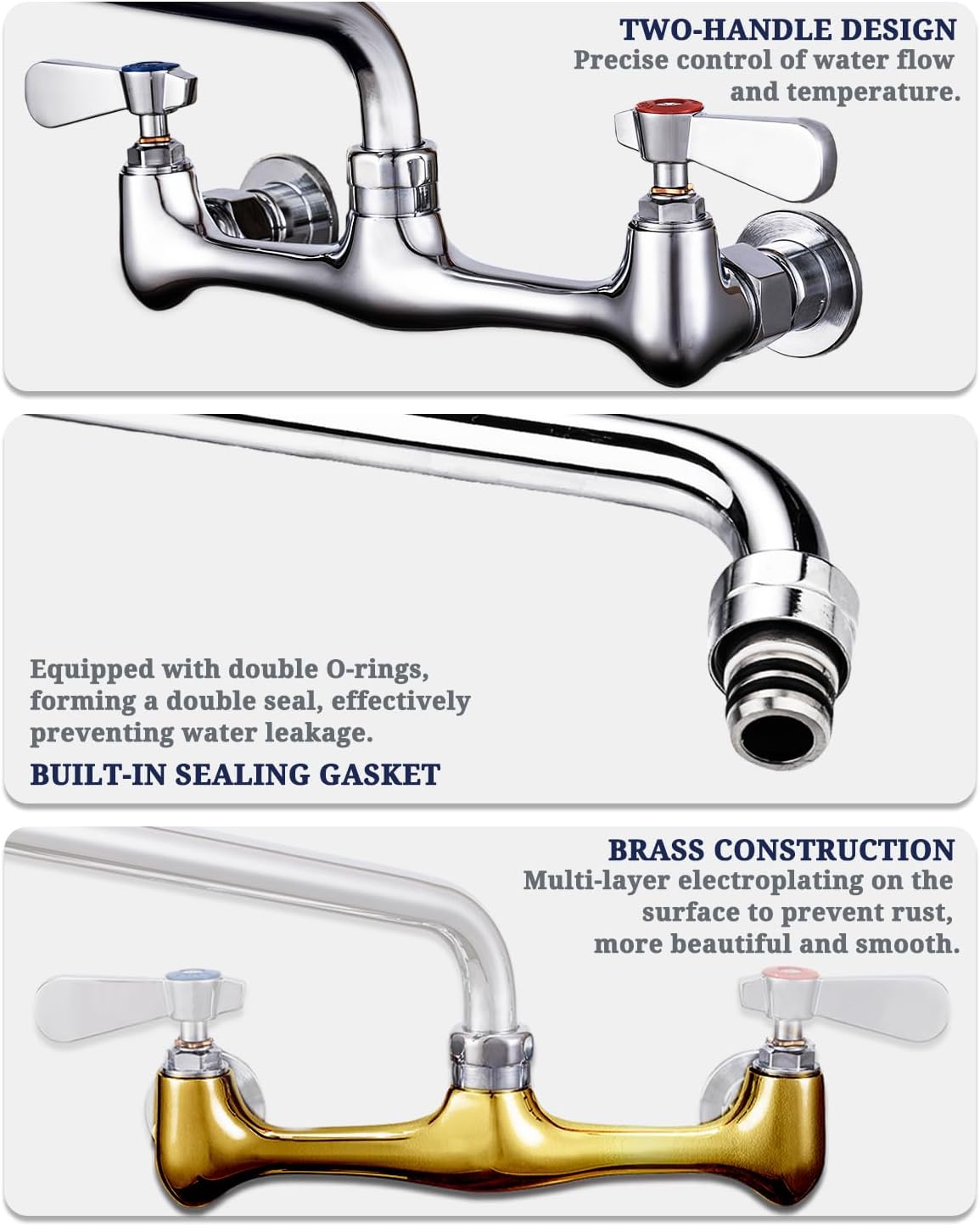 Phivan Commercial Kitchen Faucet 8 Inch Center Wall Mount Commercial Sink Faucet with 8 Inch Swivel Spout & 3-1/2 Inch Commercial Sink Drain with Twist Handle Kitchen Sink Opening Waste Drain