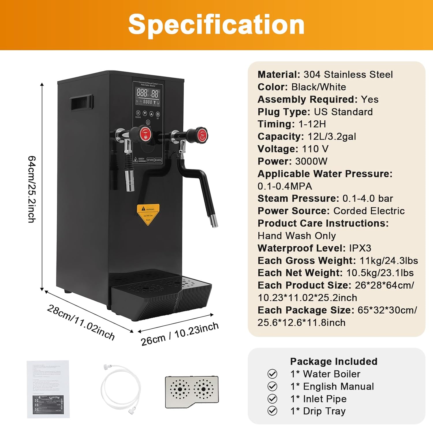 | Included Components | 1* English Manual 1* Inlet Pipe 1* Drip Tray |