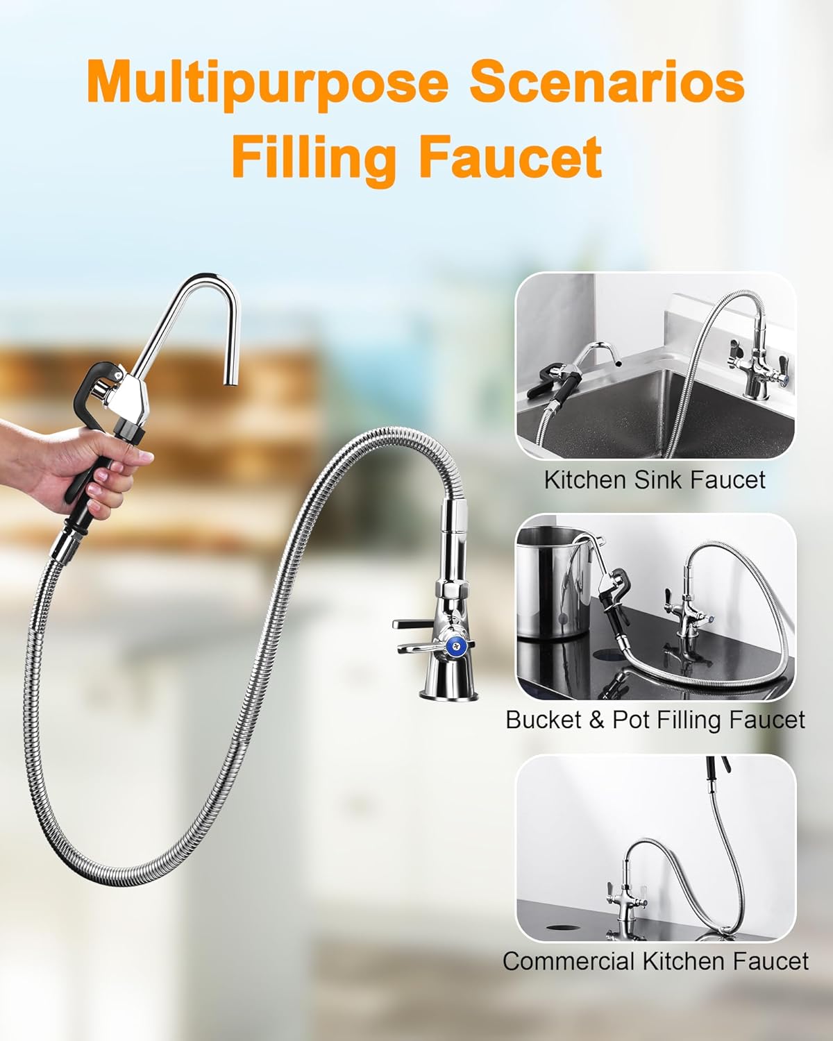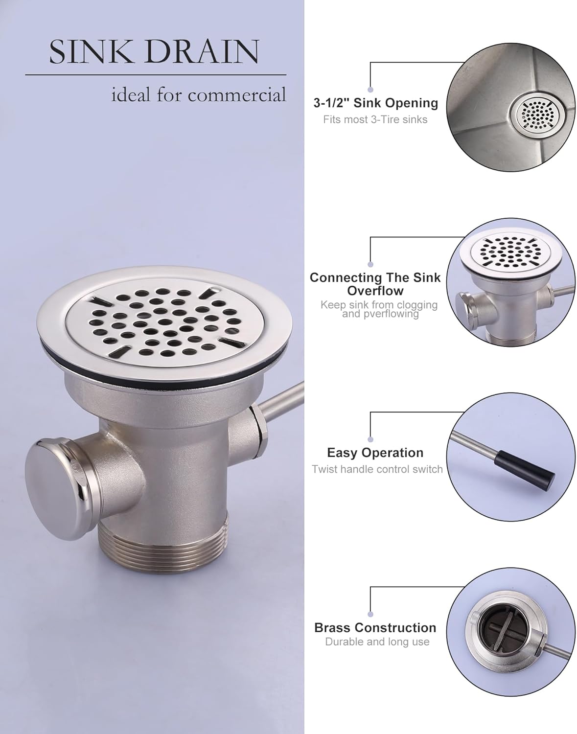 iVIGA Commercial Pot Filler Faucet - Deck Mount Pot Kettle Filling Faucet & iVIGA Commercial Sink Drain: 3-1/2" Sink Opening Waste Drain Valve