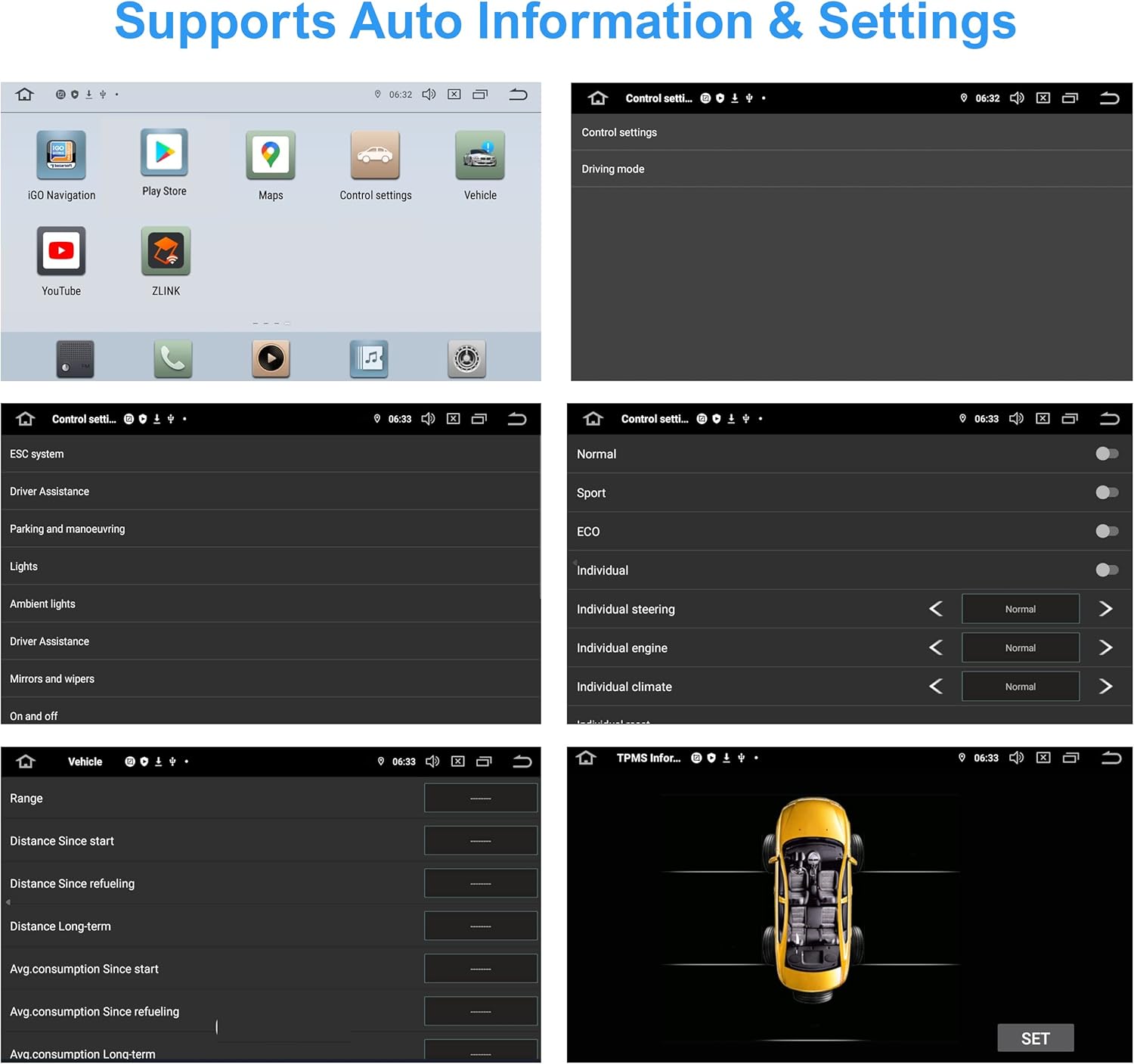 Main featuresIntuitive user interface in different languages3D interface, user-friendly control of the system via full graphic screen or buttonsFULL HD resolution with capacitive multi-touch screen controlRadio FM/AM tuner with RDS (Radio Data System, transmission of station name)USB/ SD/SDHC Slot - For music, picture and videos, play music and videos directlyBluetooth handsfree phone with synchronization of phonebook contactsBluetooth A2DP - music streaming: supports all mobile phones, Android or iPhone2-Zone function - listen to radio, TV or music while you navigateAuto-Memory - All saved settings and positions are automatically retainedBack-Zone Function - Navigate in front and watch TV or video in the backDay and night display functionPlay Stores for Android appsCustom & Reset EQ settings (Pop, Classic, Rock, Jazz, User Bass/ Treble/ Balance Control)Rear camera connection - with automatic switching function when reversing4 x audio outputs 1 x AUX A/V input 1 x video input,1x subwoofer and USB portIntegrated Carplay & AndroidAuto function without additional adapter.WIFI integrated: for direct connection with WLAN hotspots, smartphone.CompatibilityFit 100% in the following vehicles:CompatibilityFits 100% on the following vehicle models: Seat Leon III 3 (5F) from 2011 - The steering wheel control, on board computer are also supported- The original rear view camera (if present) is also supported***Optional Accessories:not included in the delivery, but can be ordered additionally / Simply enter the EAN number in the search box above! *** *** DAB+ Digital Radio Adapter EAN-No: 4262370640538*** DVB-T2 TV Receiver EAN-No: 4260555382204*** DVR DashCam EAN-No: 4260555383058*** Tire Pressure Monitoring System External EAN-No: 4260555382341*** Tire Pressure Monitoring System Internal EAN-No: 4260555388978*** OBDII Auto Check Diagnostic EAN-No: 4262370640545*** 10" Android monitor for rear EAN-No: 4260555389982*** 12" Android monitors for rear EAN-No: 4262370640217*** Wireless radio transmitter and receiver for rearview camera EAN-No: 4260555381719*** FULL HD Rear view Camera EAN-No: 4260555381764