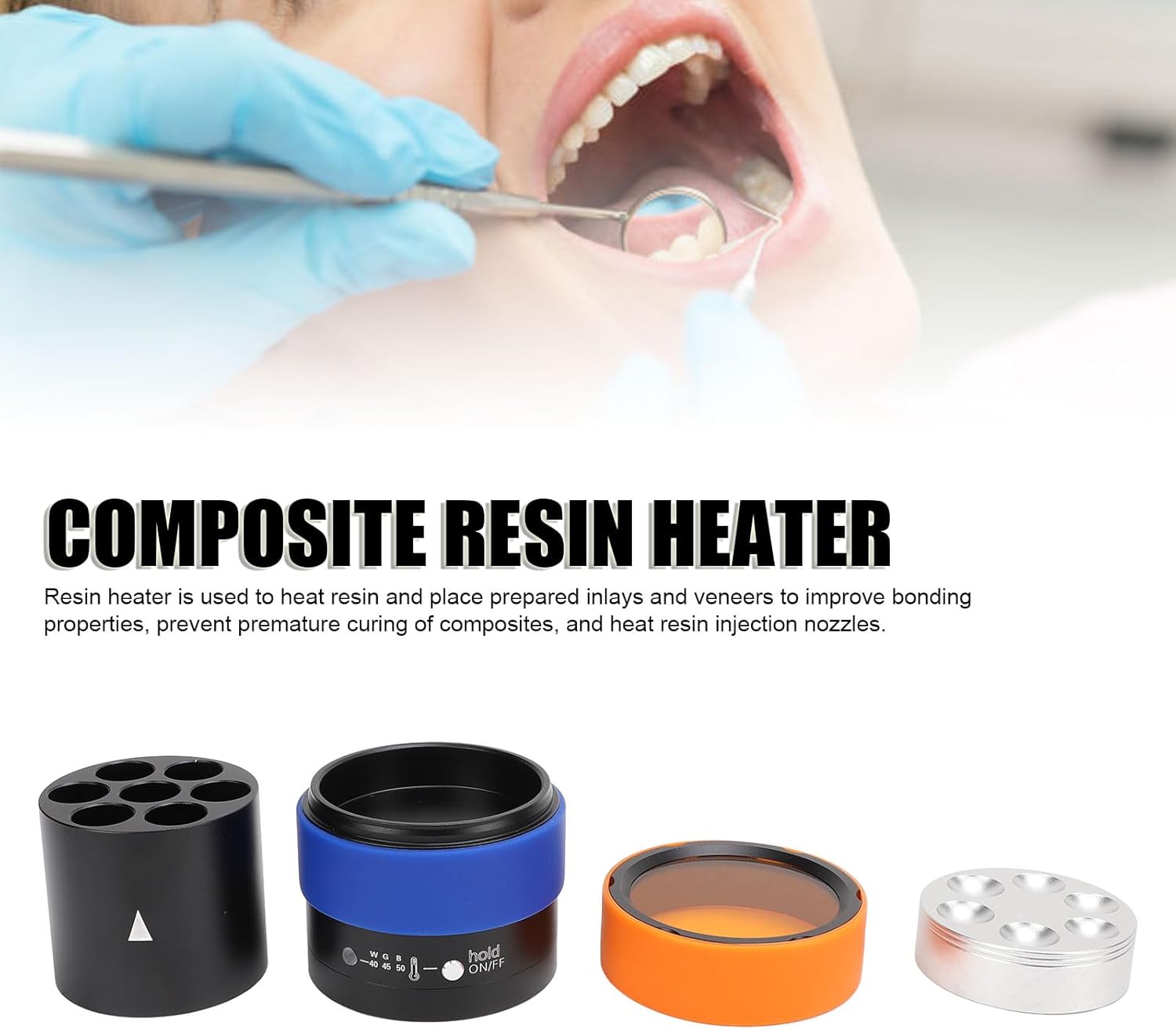 Specification: Item Type: Composite Resin Heater Material: Metal Temperature Range: 40-50 Degree Centigrade How to Use: 1. Place the heating body on a flat surface. 2. Insert the DC plug of the power adapter into the DC socket of the heating body, then plug the power adapter into the external power socket. At this point, all three temperature indicator lights are on constantly (standby heating). 3. Press the power on/off button to turn on the heating body. Press the button again to turn off the heating body. The default temperature when the heating body is turned on is 40℃. (When the heating body is turned off, all three temperature indicator lights are on constantly.) packing list: 1 x Main Unit 1 x Heater 1 x Resin Heating Plate 1 x Light Filtering Cover 1 x Supply Cord 1 x User Manual