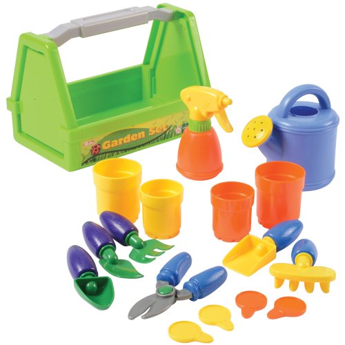• Accessories include: tote, 4 flower pots, 4 plant markers, watering can, spray mister, and 6 tools