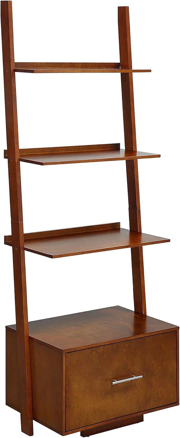 The American Heritage Ladder Bookshelf with File Drawer is a great addition to any home or office. Featuring 4 spacious tiers to store books or display collectibles. Also featuring a file drawer at the bottom, you will have space to clear your Desk of all those unwanted papers. Available in multiple finishes, this piece will easily complement any decor.