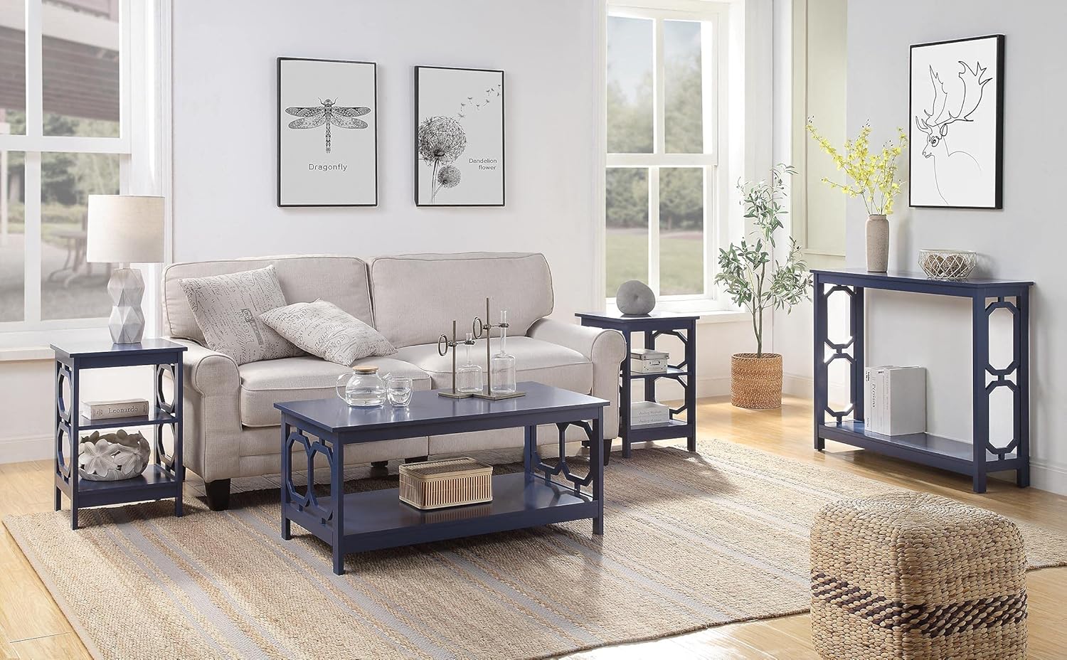 Bring home a pop of pattern with the Omega End Table with Shelves by Convenience Concepts. Available in multiple finishes and great for smaller spaces, this contemporary end table with a subtle geometric detail is sure to make a statement in any room in your home. This simple yet eye-catching design showcases clean lines and beautiful octagon side cut-outs. Three tiers of spacious shelving offer plenty of room for home decorations and entertainment essentials. Crafted for long-term use, this sleek table is engineered from manufactured wood and finished with smooth non-lead-based paint. Coordinate with additional pieces from the beautiful Omega Collection by Convenience Concepts, each sold separately.