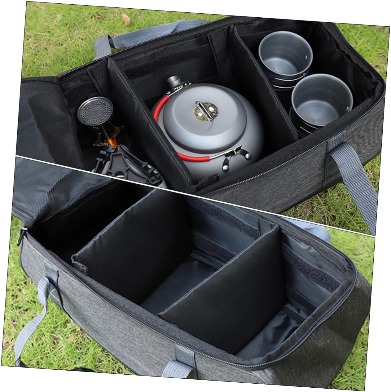 Package Include 1 x Bag Characteristics -Material:Oxford cloth utensil bag -Size:49.00X30.00X22.50cm/19.26X11.79X8.84in barbecue pouch -Color:Dark Grey utensil pouch -High-class zipper, wear-resistant and , with a handle design, easy to carry case for packing. -Wide range of uses, can also be used to accommodate other objects, can be used flexibly silverware organizer with lid. - design and large capacity; simple zipper design, Frying Pan Bag is easy to open and close frying pan pouch. -Heavy-duty baking tray carrying storage bag. material, it is very strong and frying pan container. -Strong wraparound handles provide high levels of support and large pockets for grills and cooking accessories pouch for outdoor.Goods Descriptionutensil bag Manufactured with which is and sturdy.flatware storage Crafted workmanship makes it not easy to broken or deform.silverware organizer with lid Multi-function, can be used as tool bag, pot and storage bag.stove bag With large capacity, it can hold many things, such as the iron pan, barbecue pan, etc.utensil organizer with lid This Outdoor Camping Storage Bag is great